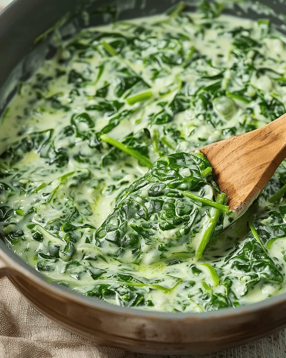 Striking the right balance in texture is key for your creamy spinach to shine. You want a rich, velvety sauce that clings to the spinach without being overly soupy. Start by cooking your base ingredients—like scallions or garlic—in a good amount of butter until soft. Slowly add heavy cream and allow it to simmer and thicken. If it becomes too thick, simply stir in a splash of vegetable or chicken broth until you achieve your desired consistency.