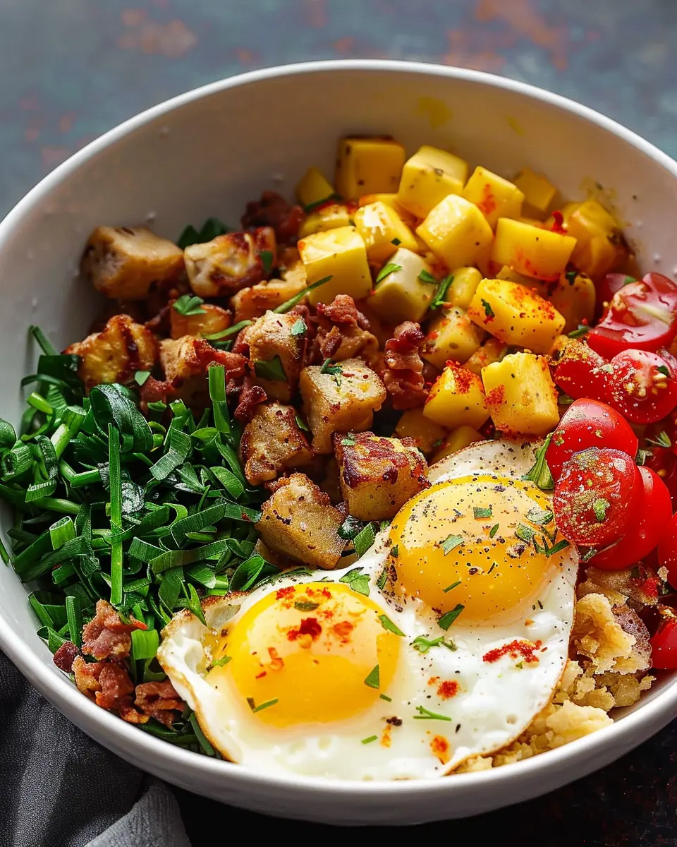 Transform your breakfast game with the Breakfast Scramble Bowl! This hearty dish isn’t just a meal; it’s a fresh start that fuels your day. Packed with protein-rich ingredients like turkey bacon and chicken ham, it provides the energy boost you need to tackle morning meetings and weekend adventures alike.