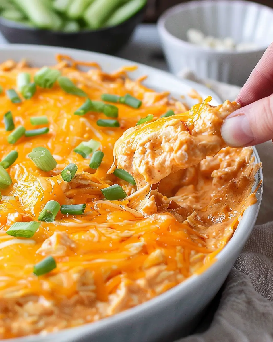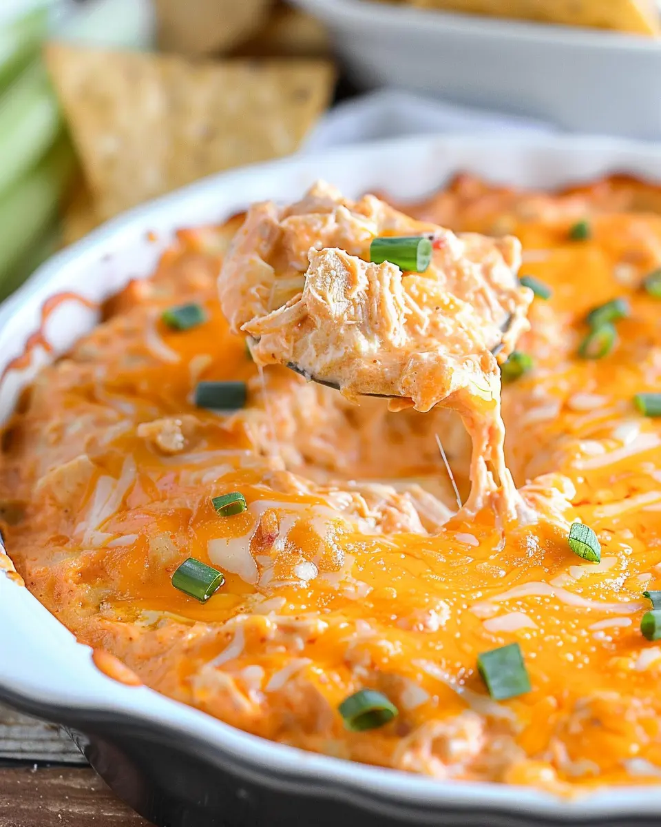 While your buffalo chicken dip is baking, gather your garnish essentials. Chopped green onions or cilantro add a fresh pop of color and flavor. You might also consider adding a drizzle of ranch or blue cheese dressing to cater to different taste preferences.