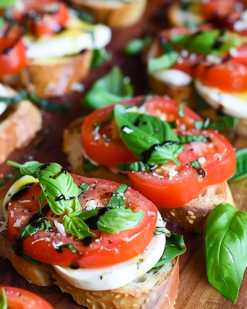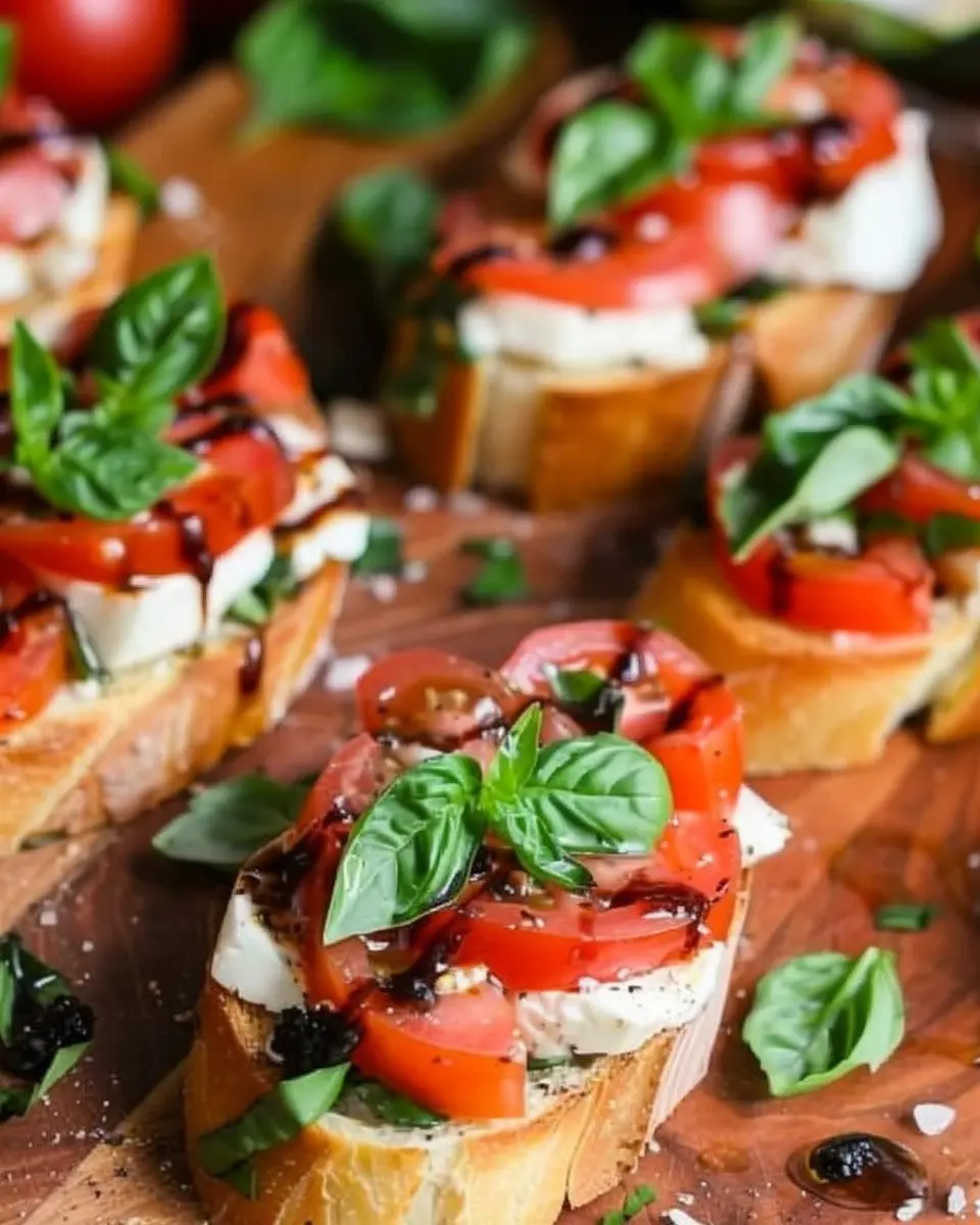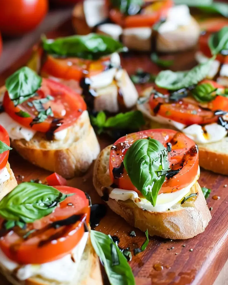 • Platter Style: Arrange the caprese bruschetta on a large wooden board for a rustic look.