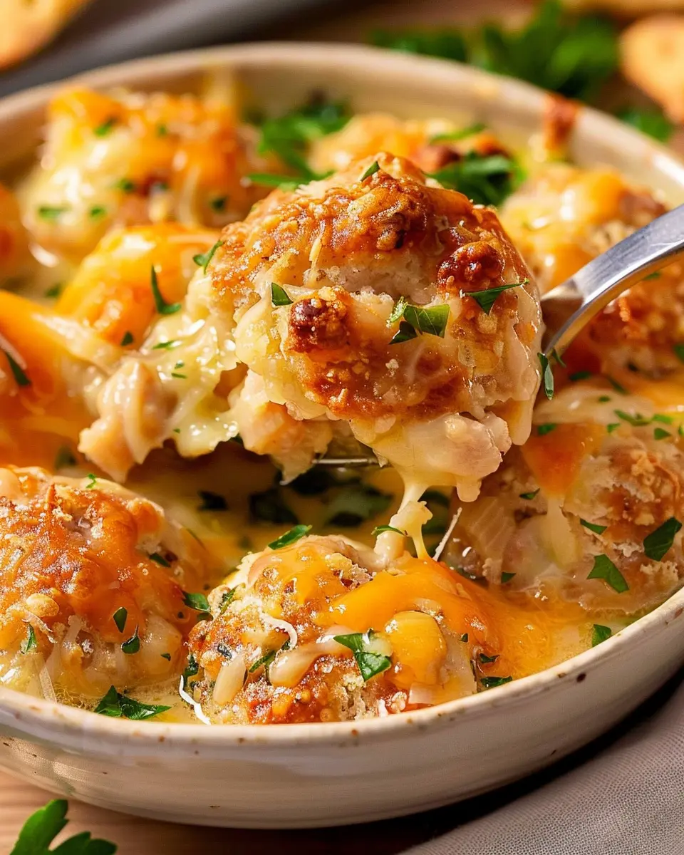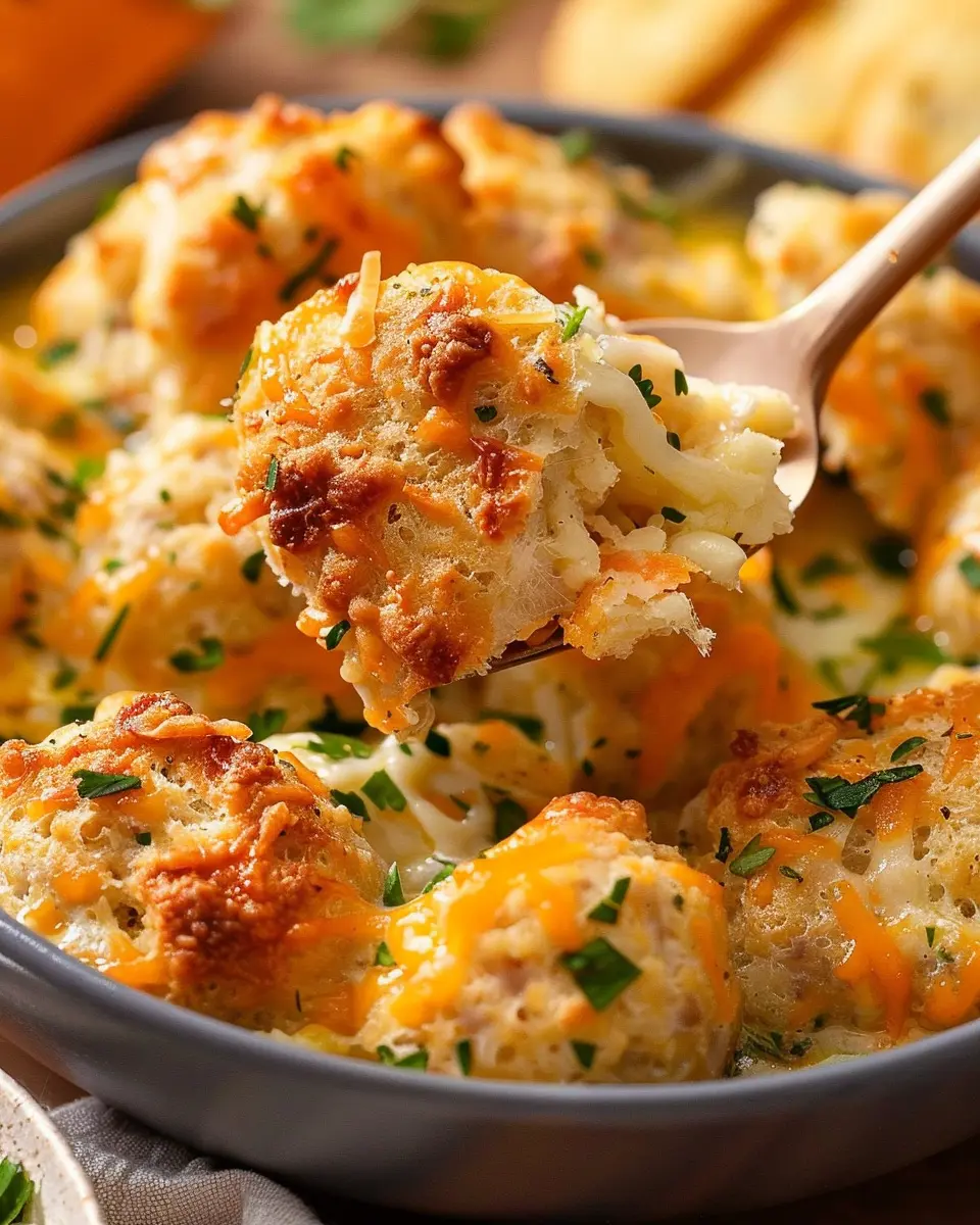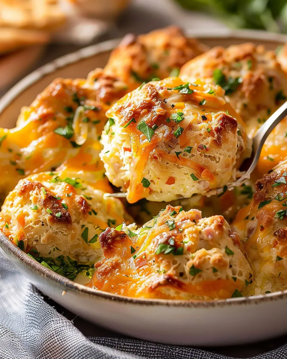 Delicious Cheddar Bay Biscuit Sausage Balls made with turkey bacon and chicken ham, perfect for any gathering!