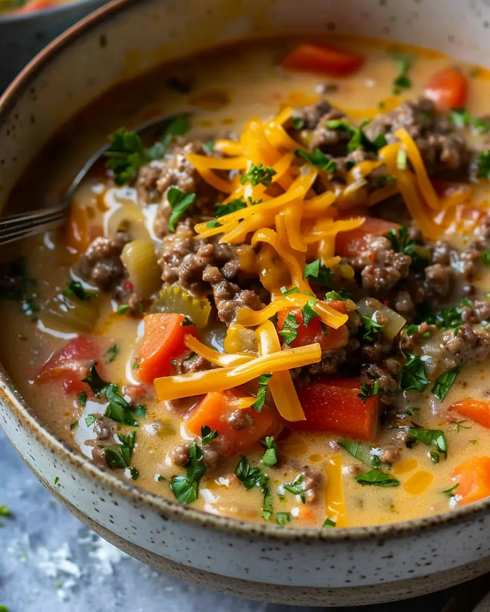 Cheeseburger Soup: Indulgent Comfort Food with Turkey Bacon