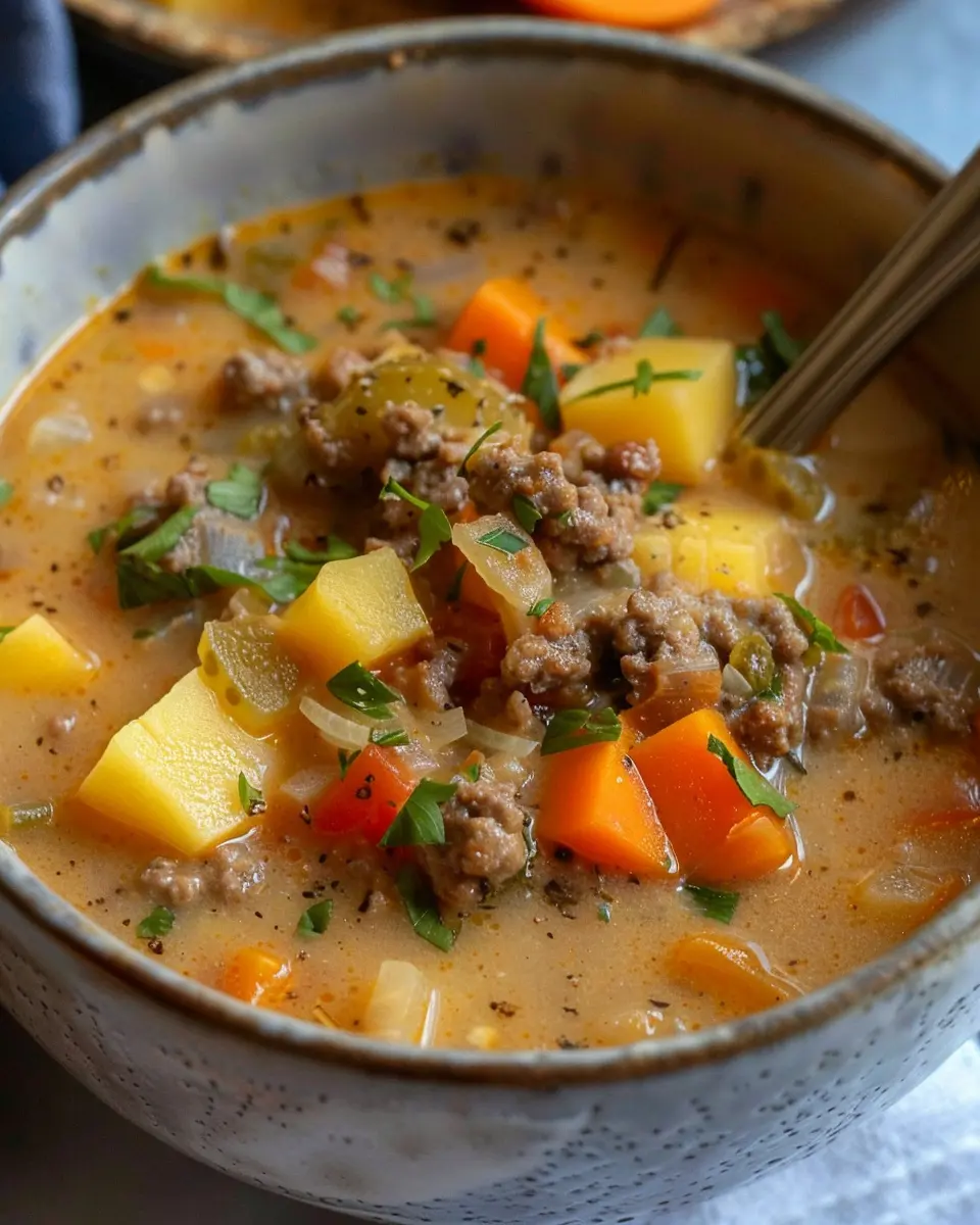 Making Cheeseburger Soup is like taking your favorite burger and turning it into a cozy bowl of goodness. Perfect for busy weeknights or casual gatherings, this recipe is simple, satisfying, and utterly delicious. Follow this step-by-step guide to create a creamy and hearty dish that you and your friends will adore.