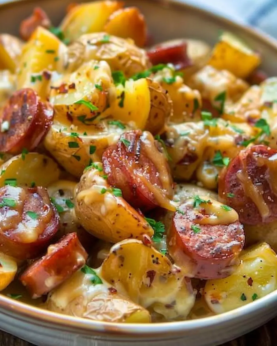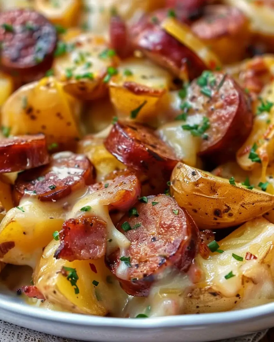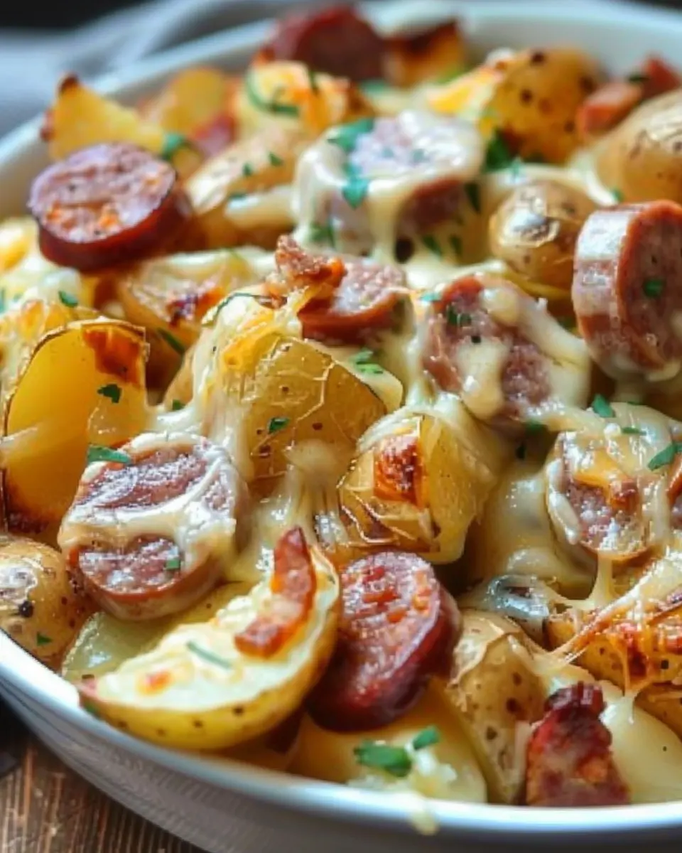 Keywords: Cheesy Ranch Potatoes, Smoked Sausage, Indulgent Meal