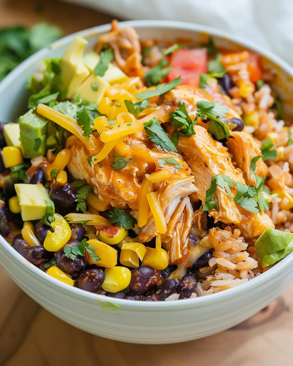 PrintChicken Burrito Bowl: Easy Slow Cooker Recipe for Tasty Meals