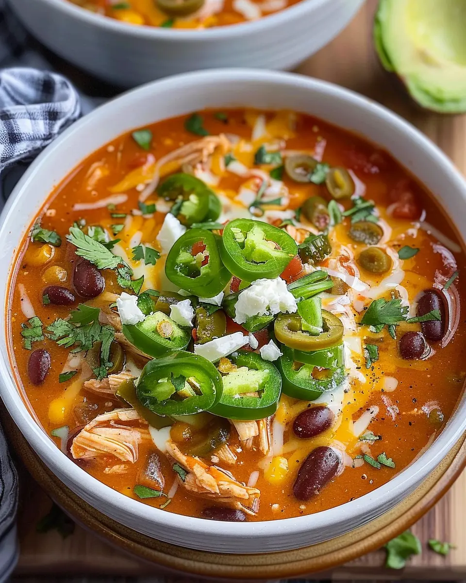 A deliciously rich and hearty chicken enchilada soup that brings warmth and comfort on a cold day.