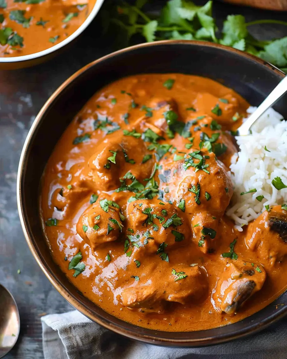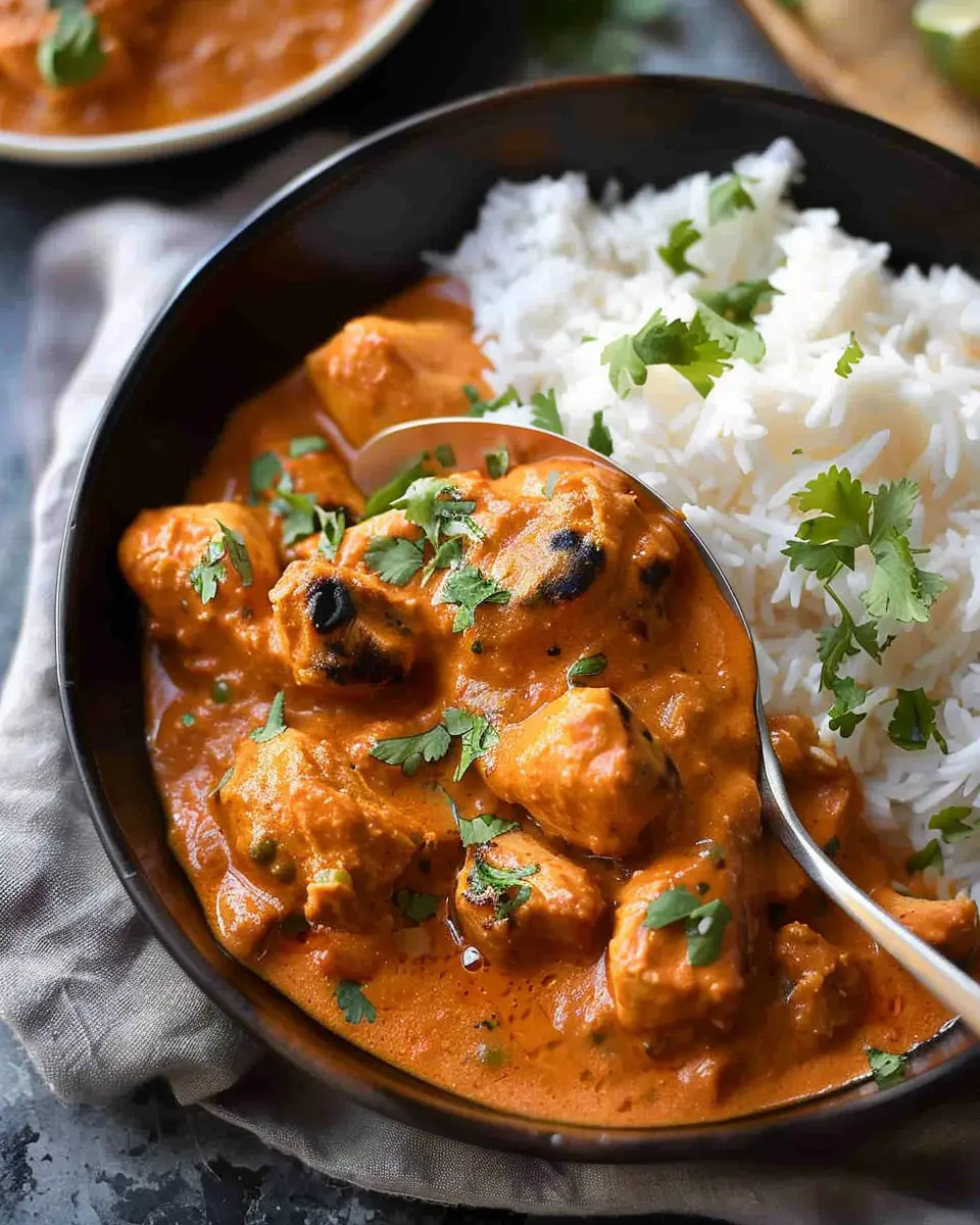 Flavor Explosion: The marinade made from yogurt and spices infuses the chicken with flavor before it’s grilled or baked. When combined with the creamy tomato sauce, each bite is a mouthful of savory richness.