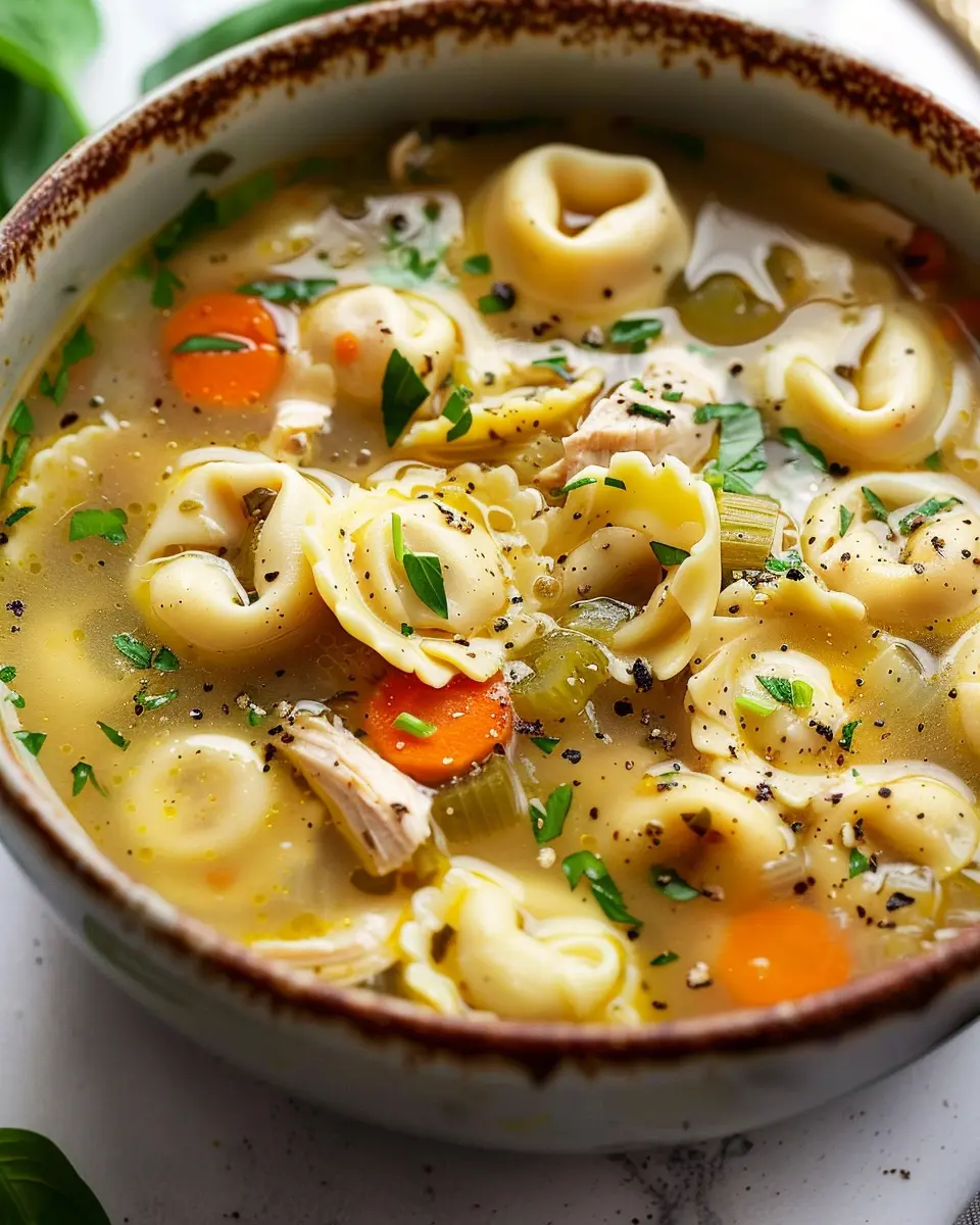 A comforting soup that combines tender chicken and flavorful tortellini, perfect for any day of the week.