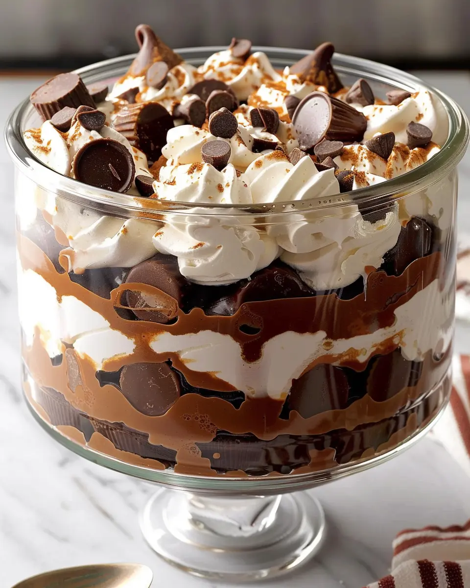 Indulge in a delightful layer of chocolate and peanut butter in this rich trifle dessert!