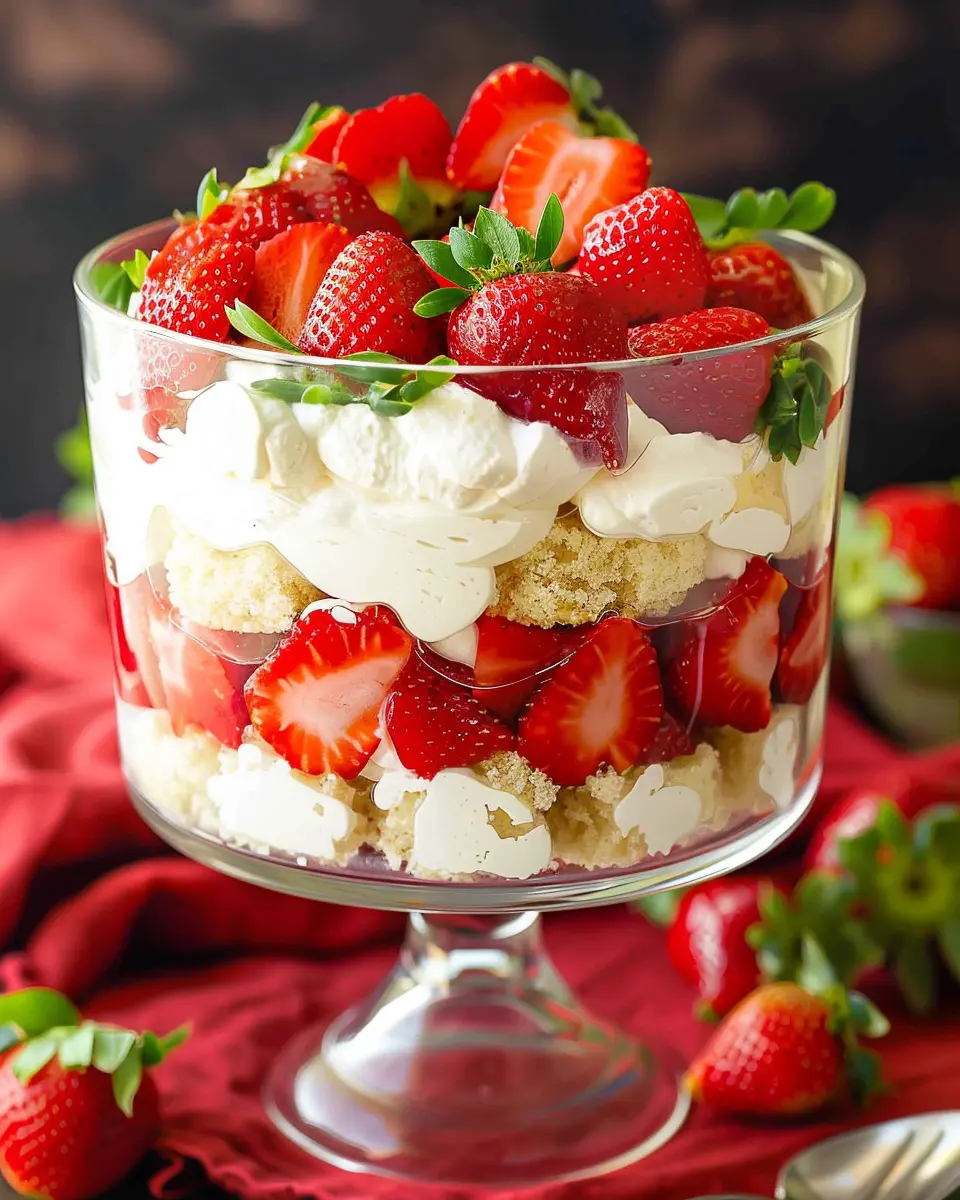 A delightful and easy-to-make dessert that layers strawberries, cake, and whipped cream, creating a classic indulgence for everyone.