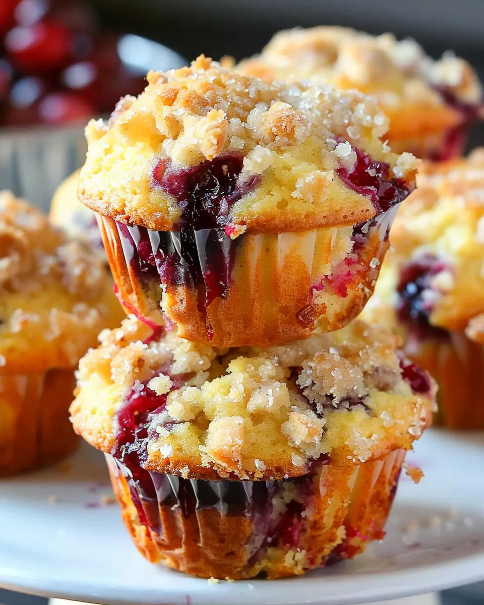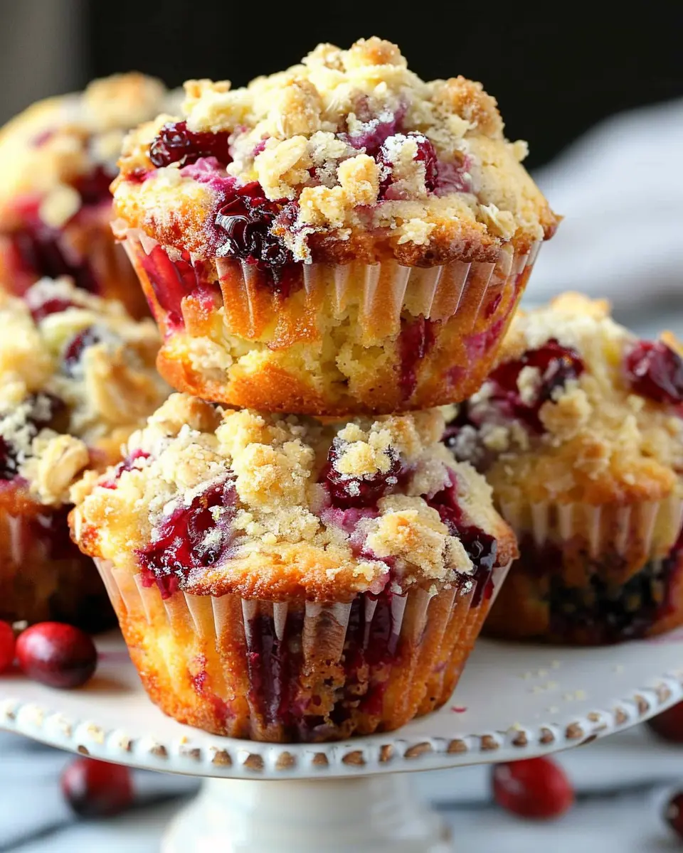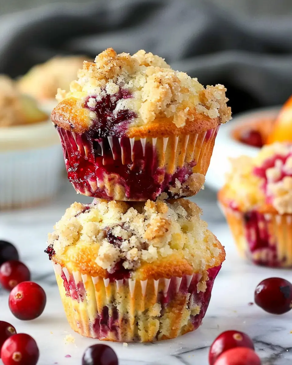 Deliciously moist and bursting with flavor, these cranberry orange muffins are topped with a crunchy streusel, making them a perfect treat for breakfast or a snack.