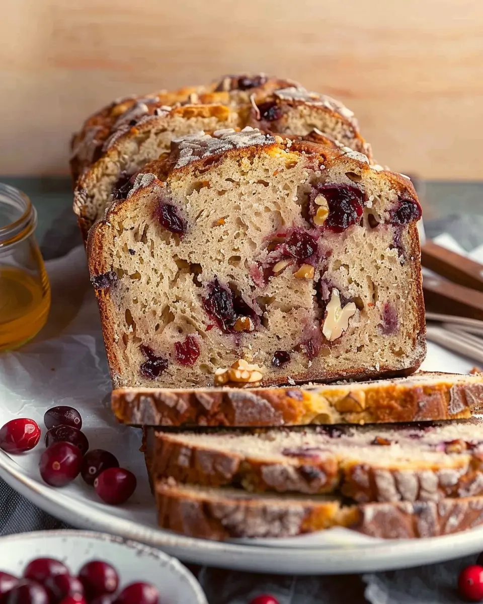 A delightful bread recipe that combines tart cranberries and crunchy walnuts for a perfect homemade treat.