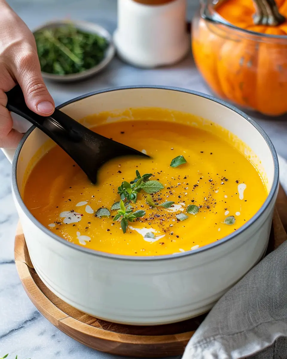 Taste the soup before serving; adding a little salt or pepper can be the finishing touch it needs. Garnish with fresh herbs and, if you desire, crispy turkey bacon for an added crunch. Enjoy your comforting bowl of creamy autumn squash soup, soaking in all the flavors of the season.