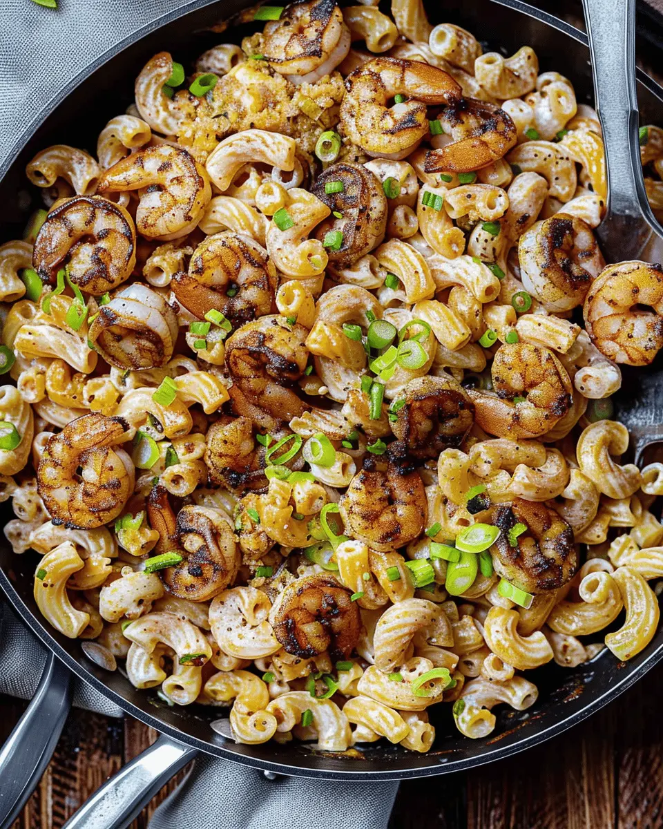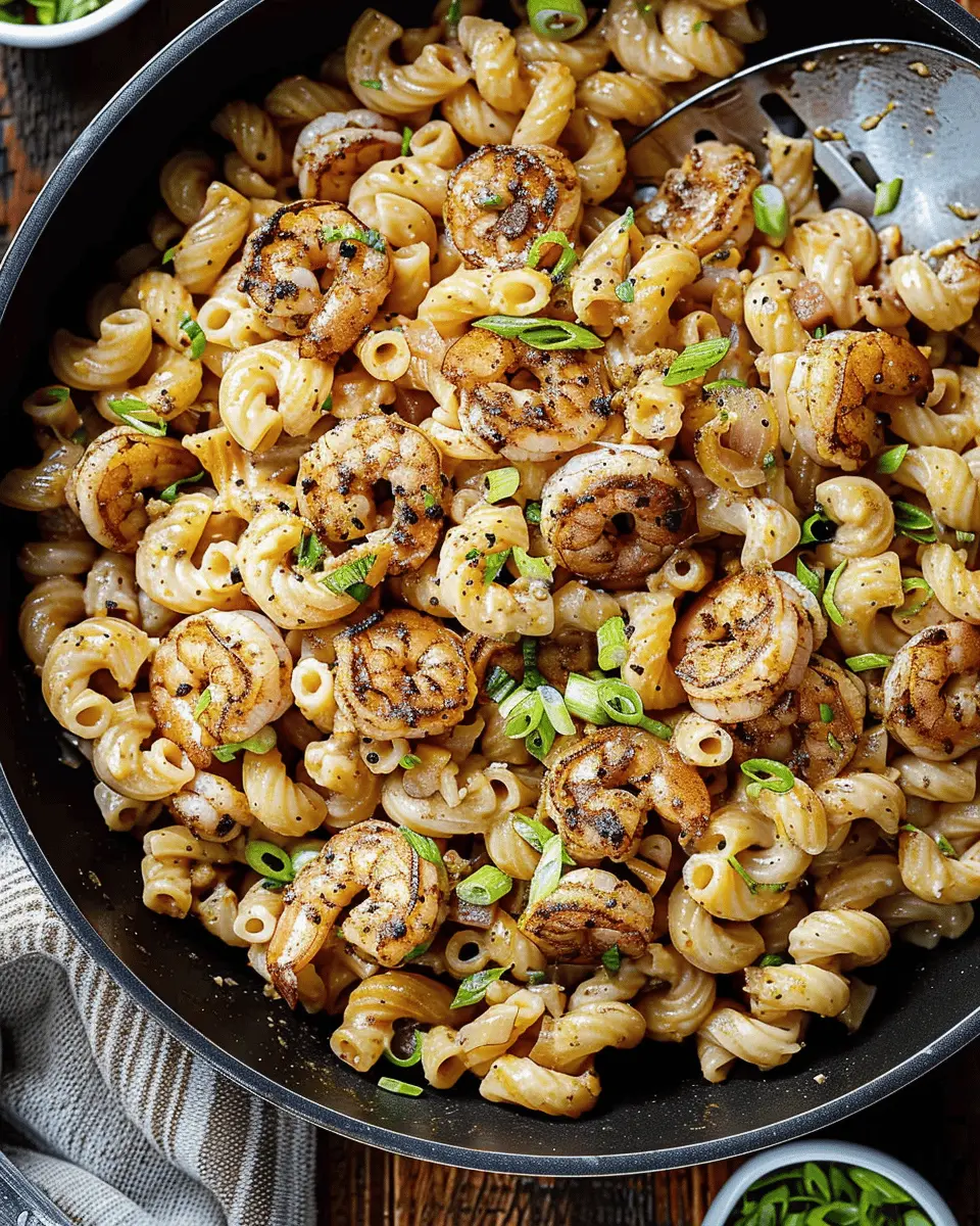A rich and creamy Cajun pasta dish featuring blackened shrimp and cavatappi.