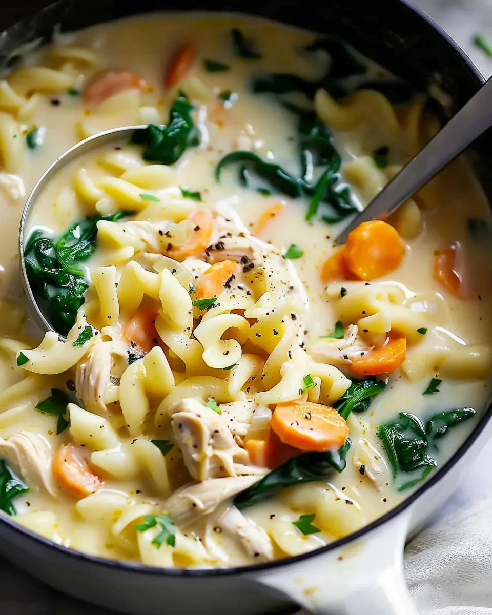 Feeling adventurous? Switch up the pasta shape! While classic elbow macaroni or fusilli are popular choices, consider options like orecchiette or farfalle for a fun twist. The unique shapes can capture the creamy chicken pasta soup more effectively, making every spoonful an exciting experience. Plus, experimenting with whole grain or gluten-free pasta can cater to various dietary needs.