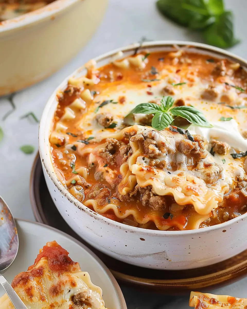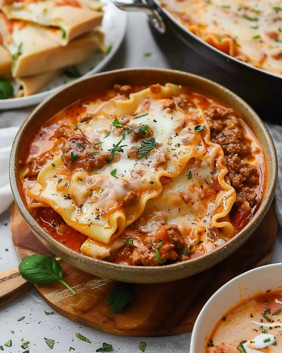 Now you have a delicious, hearty bowl of creamy lasagna soup ready to warm your soul and delight your taste buds. Share it with friends or enjoy it during a cozy night in. This versatile dish works well with garlic bread or a fresh salad on the side! Happy cooking!