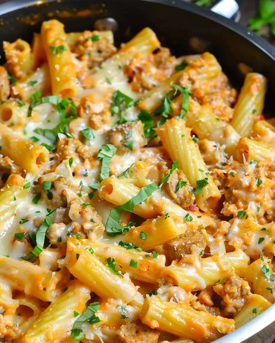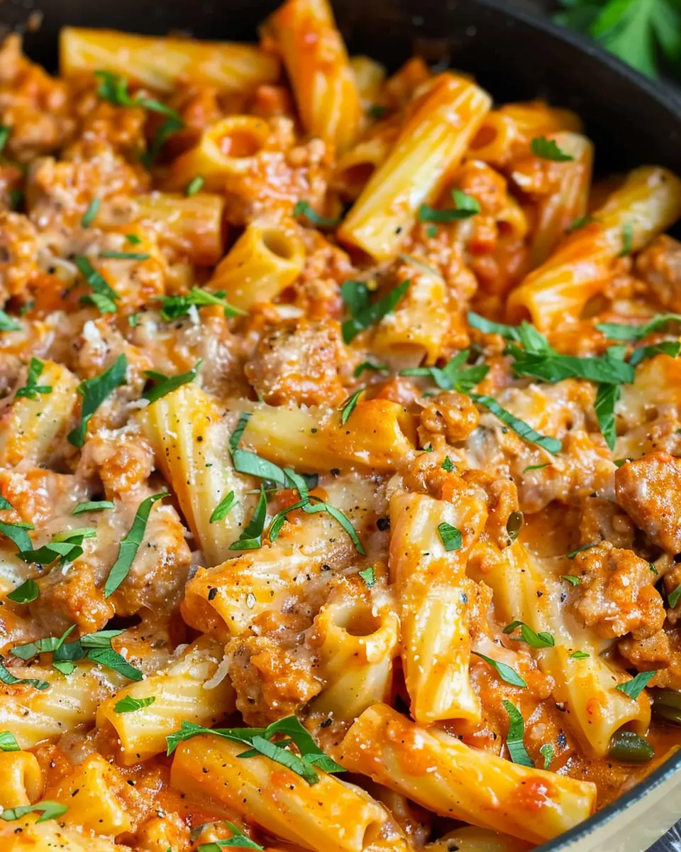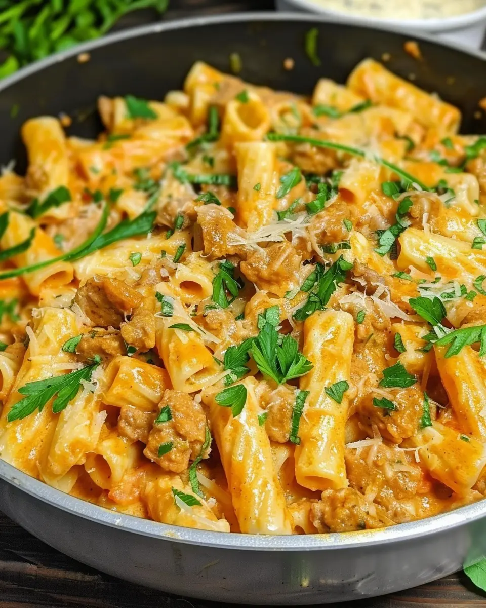 A rich and creamy pasta dish that combines sausage and rigatoni for a perfect comforting meal.