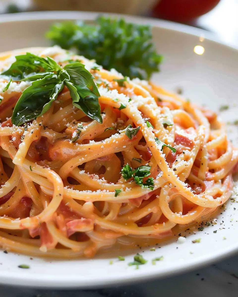 PrintCreamy Tomato Pasta: The Best Comfort Dish with Turkey Bacon