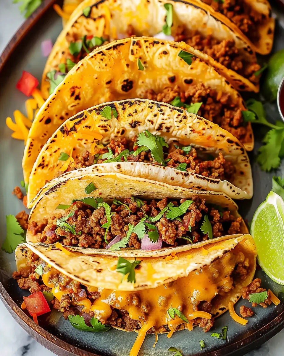 Transform your crispy baked ground beef tacos into a flavor sensation with vibrant garnishes! Consider adding: