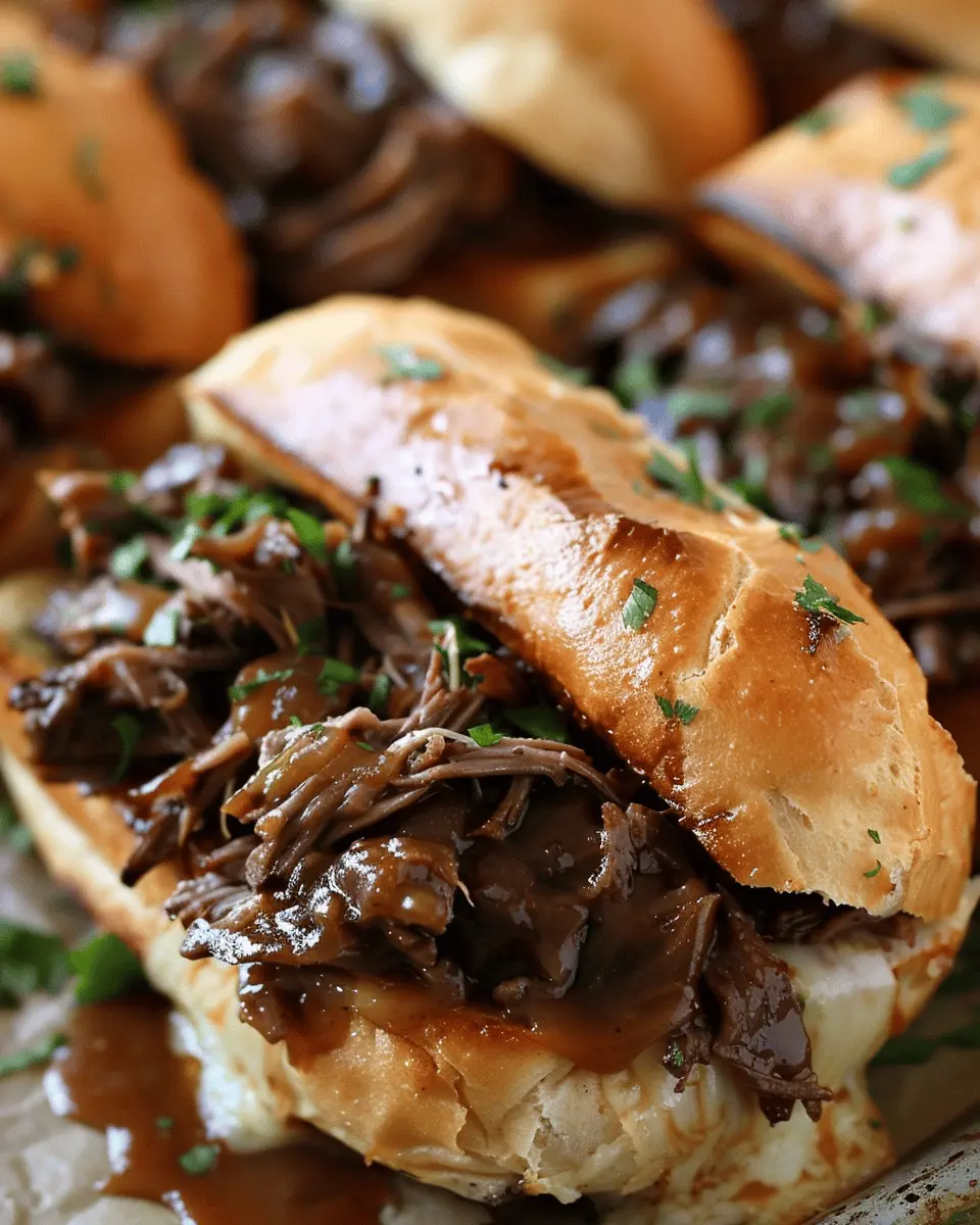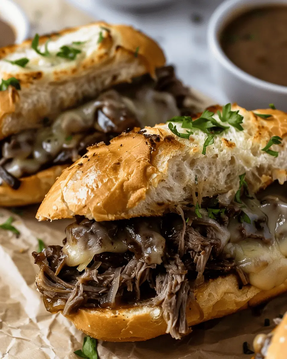 To serve, pile generous portions of the shredded beef onto each toasted roll and top them with melted cheese if desired. Serve with a small cup of the broth for dipping—trust me; it’s what transforms these sandwiches from great to legendary!