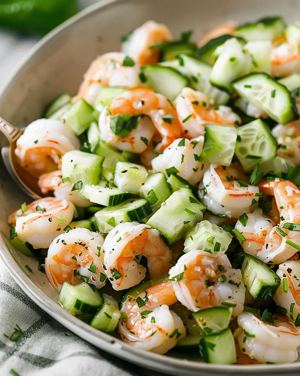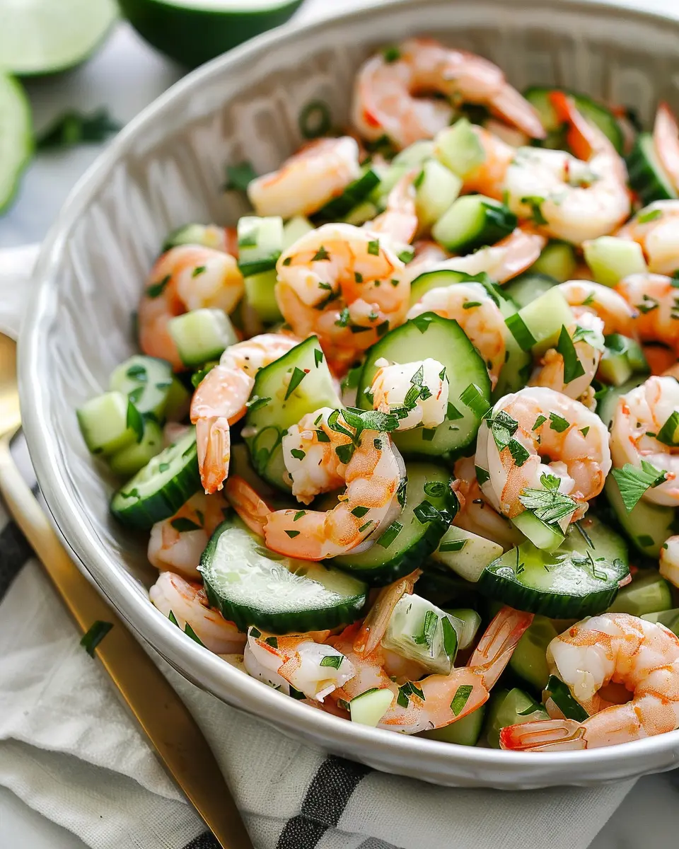 A light and refreshing salad featuring cucumber and shrimp, perfect for warm days.