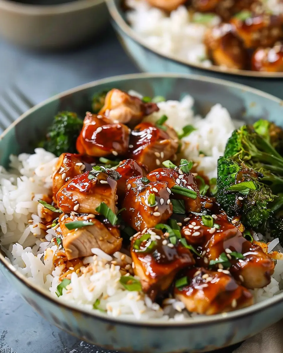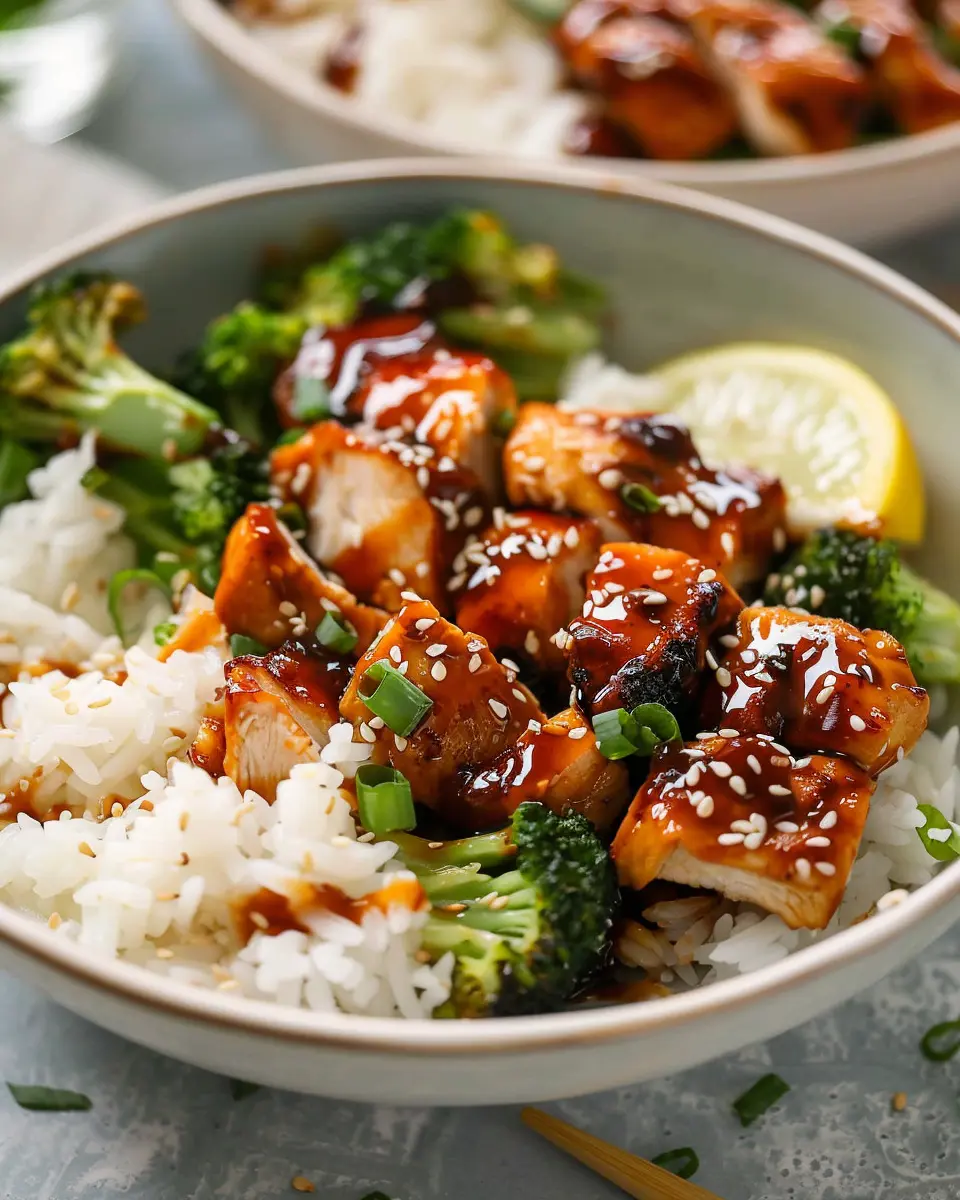 PrintDelicious Sticky Chicken Rice Bowls Recipe for a Cozy Night In