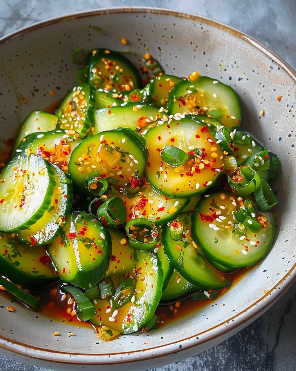 Versatility: The beauty of cucumbers lies in their adaptability. You can easily tweak the dressing and toppings to suit your preferences—add some chili flakes for spice or sprinkle sesame seeds for that delightful crunch.