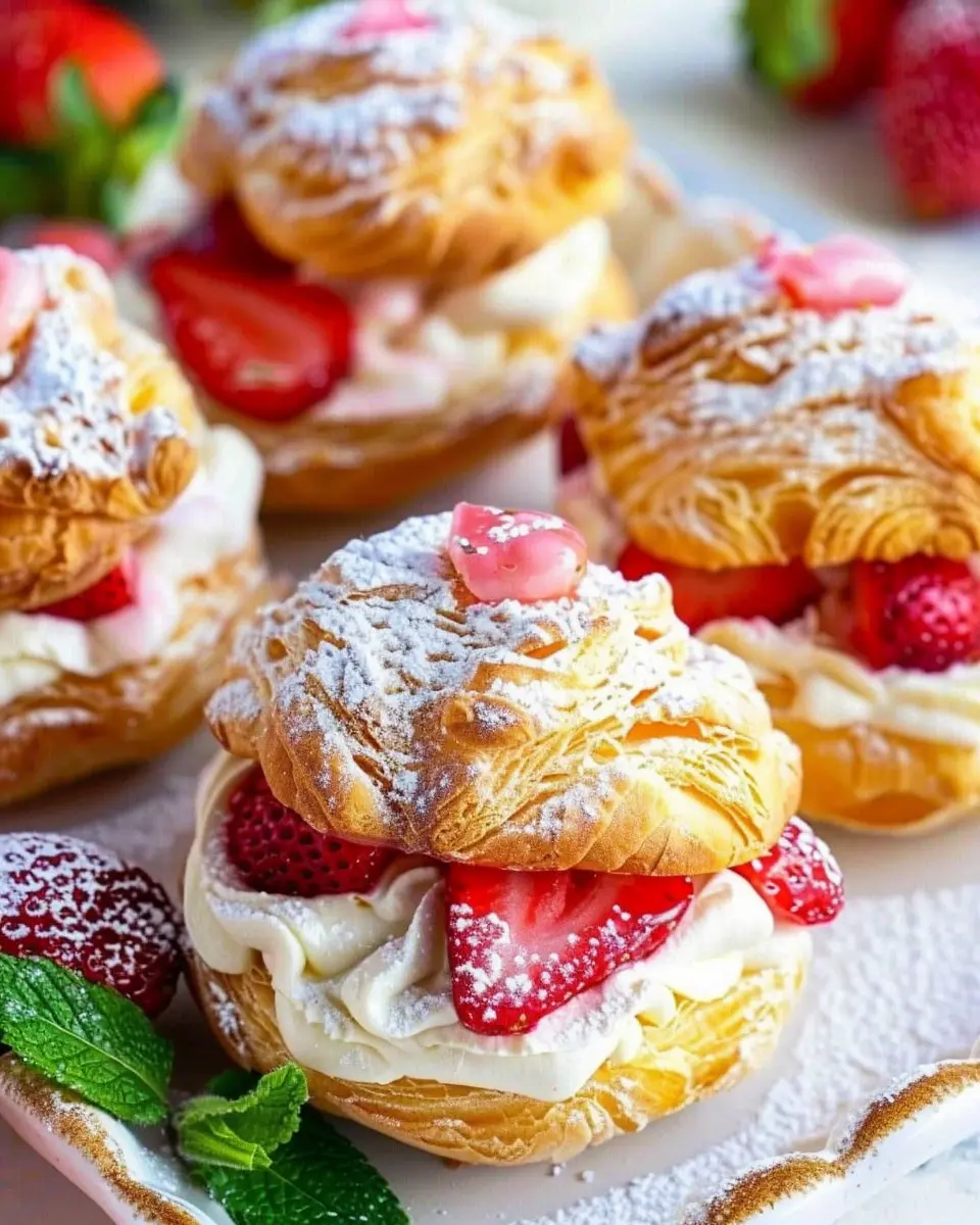 Versatility: These cream puffs can easily adapt to various occasions. Whether you’re hosting a brunch, celebrating a birthday, or just treating yourself after a long week, you can customize the flavors. Swap strawberries for blueberries or raspberries, or try adding a hint of vanilla or almond extract for a unique twist.