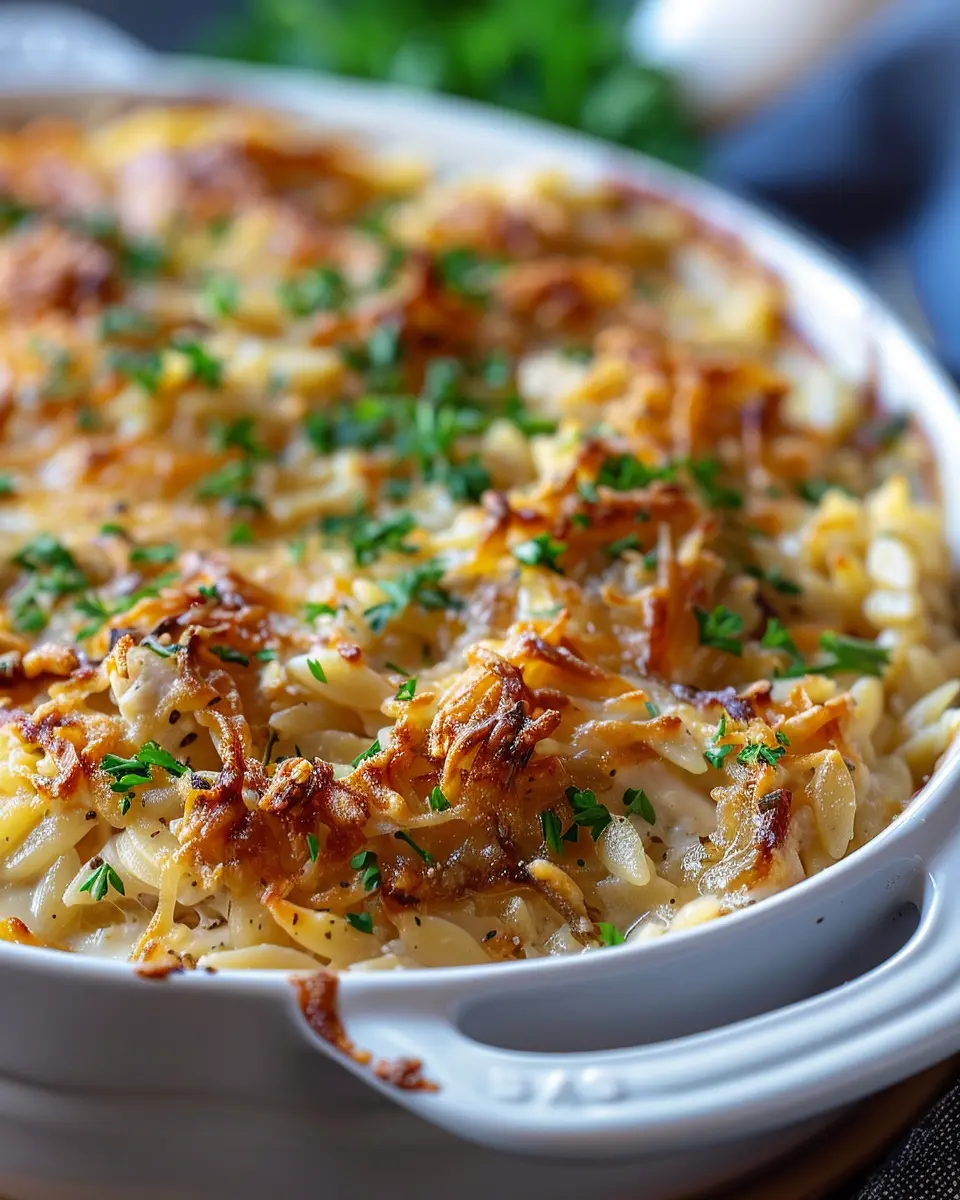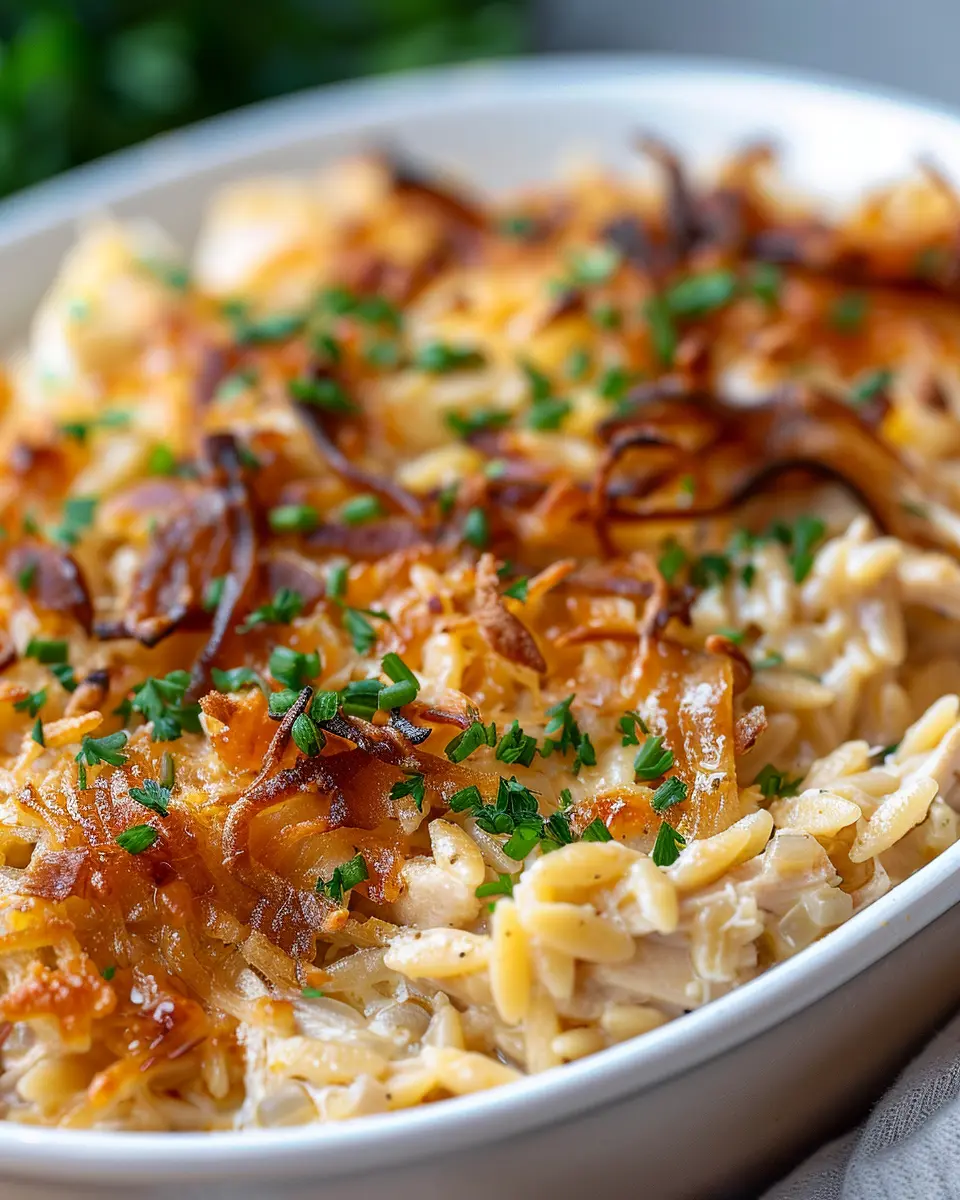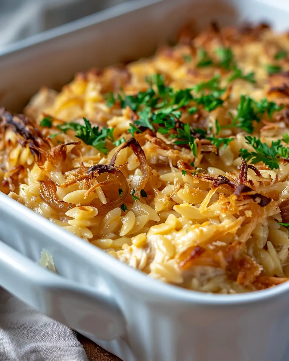 French Onion Chicken Orzo Casserole: Easy, Comforting Delight