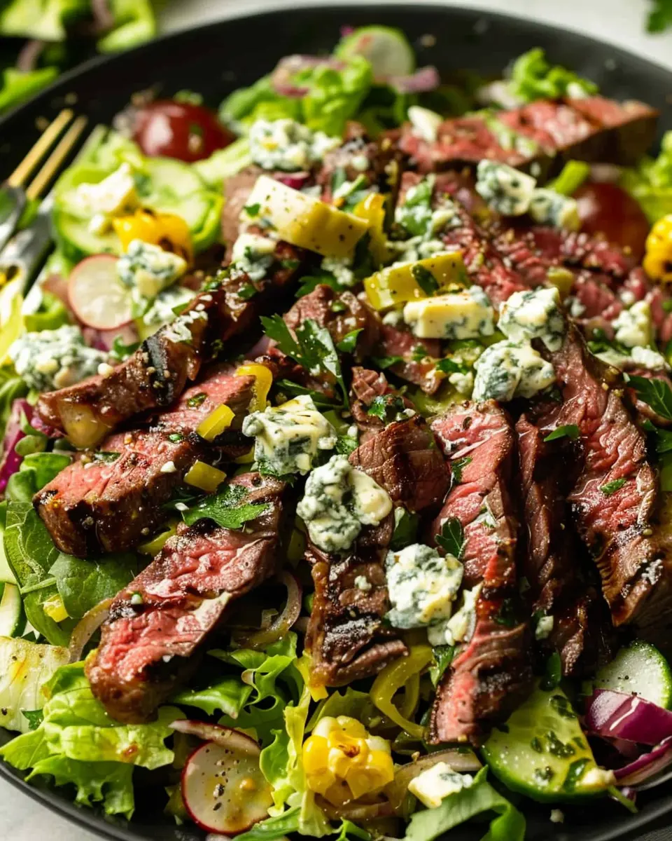 Gorgonzola Steak Salad: A Juicy Twist with Turkey Bacon Delight
