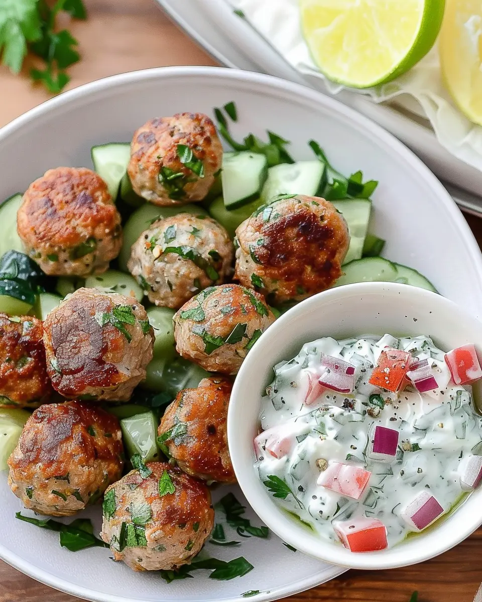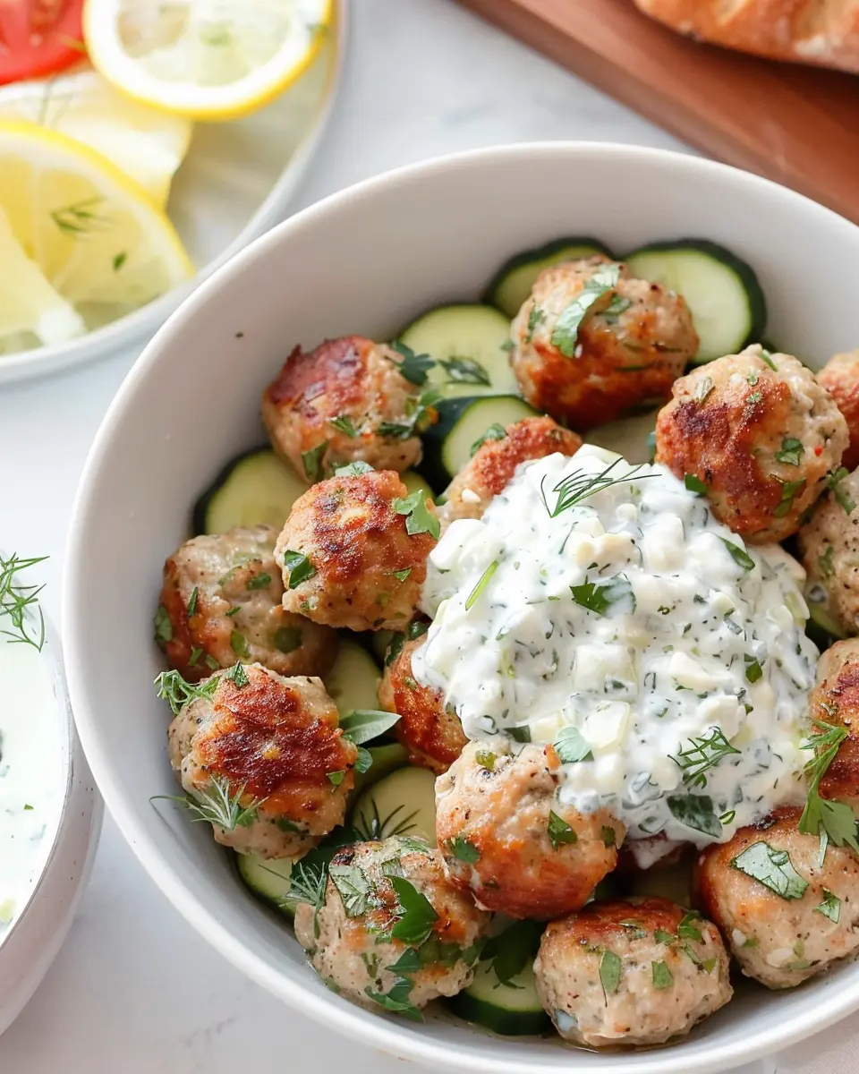 PrintGreek Turkey Meatballs: Juicy Bites with Homemade Tzatziki