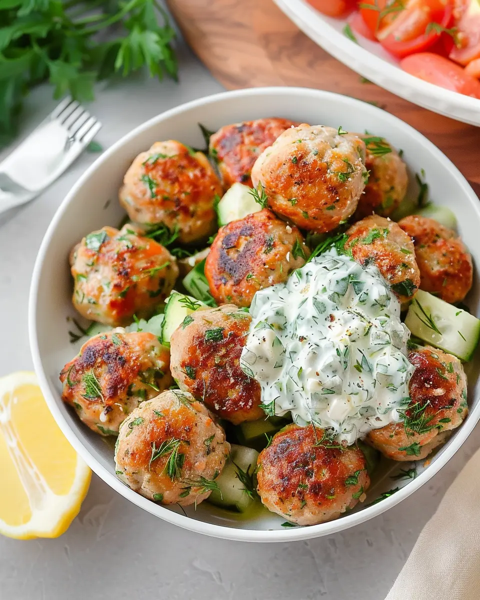 Keywords: Greek Turkey Meatballs, Homemade Tzatziki