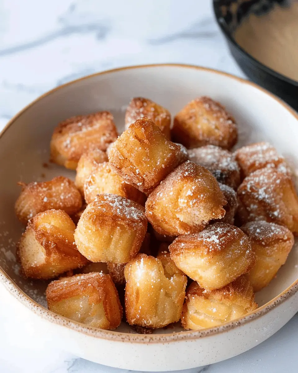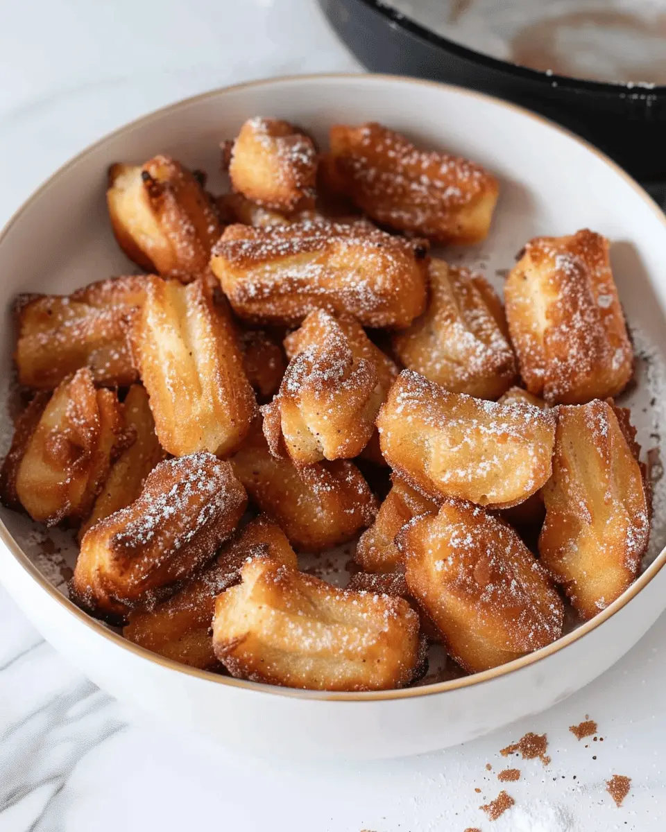 The air fryer does its magic in just 10 minutes. Once the churro bites are formed, they’ll puff up beautifully, giving you that satisfying crunch without the guilt.