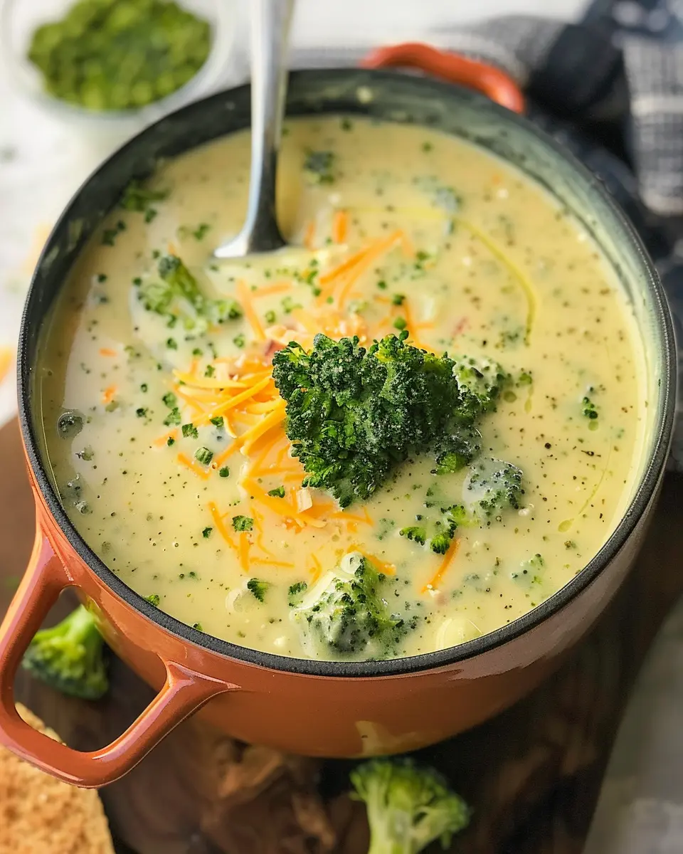 A delicious and nutritious soup packed with protein and flavor, featuring fresh broccoli, hearty turkey bacon, and creamy cheddar cheese.