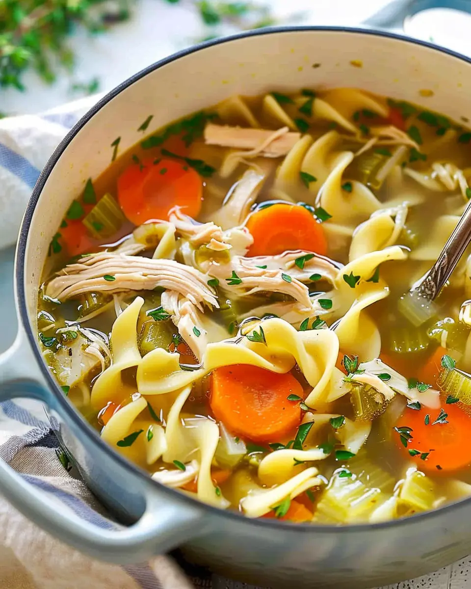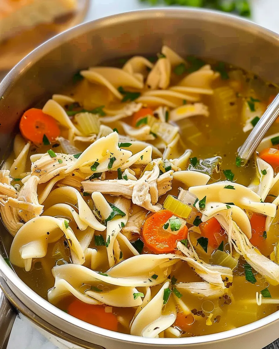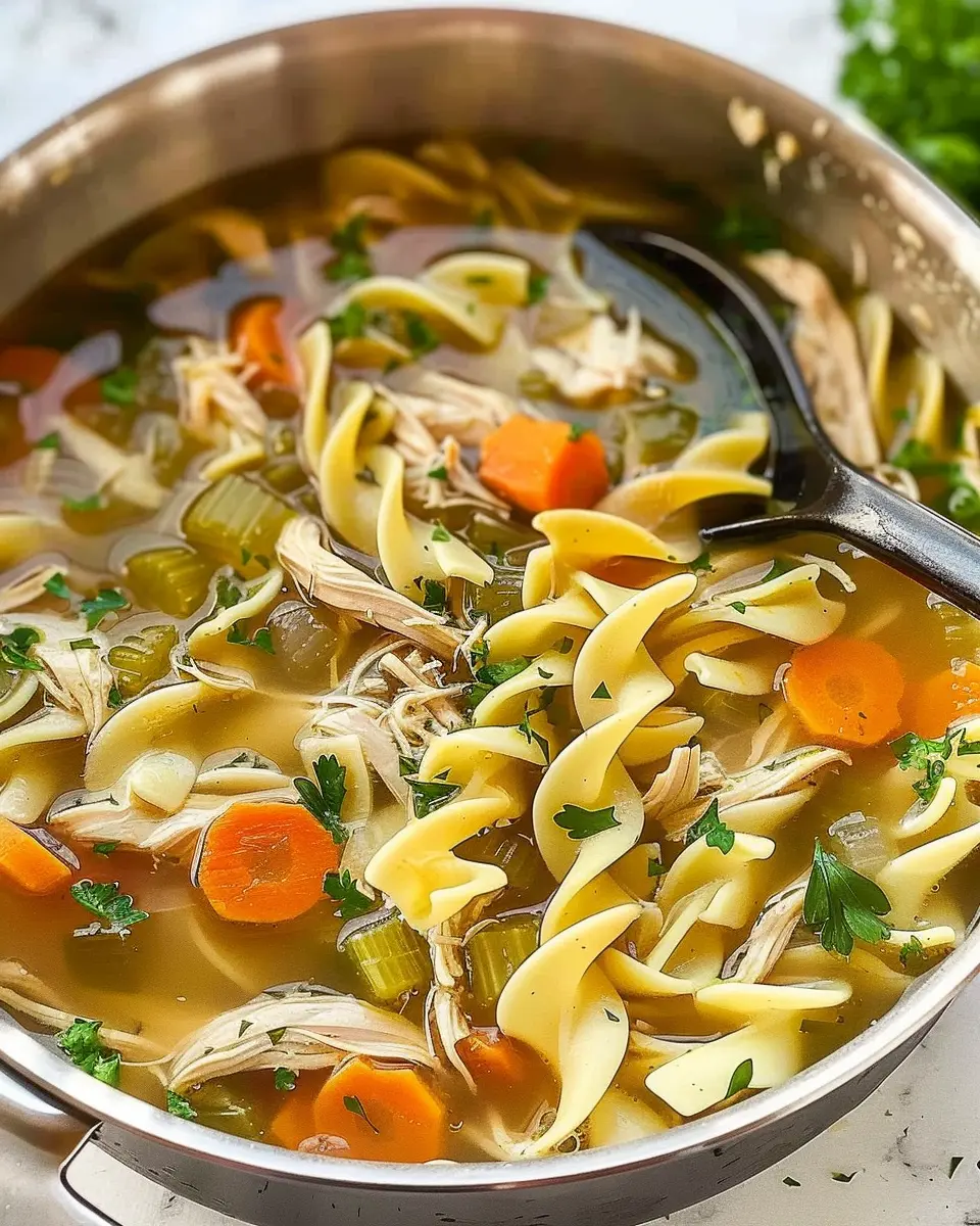A warm and hearty homemade chicken noodle soup that’s perfect for any occasion.