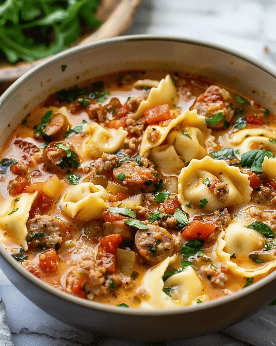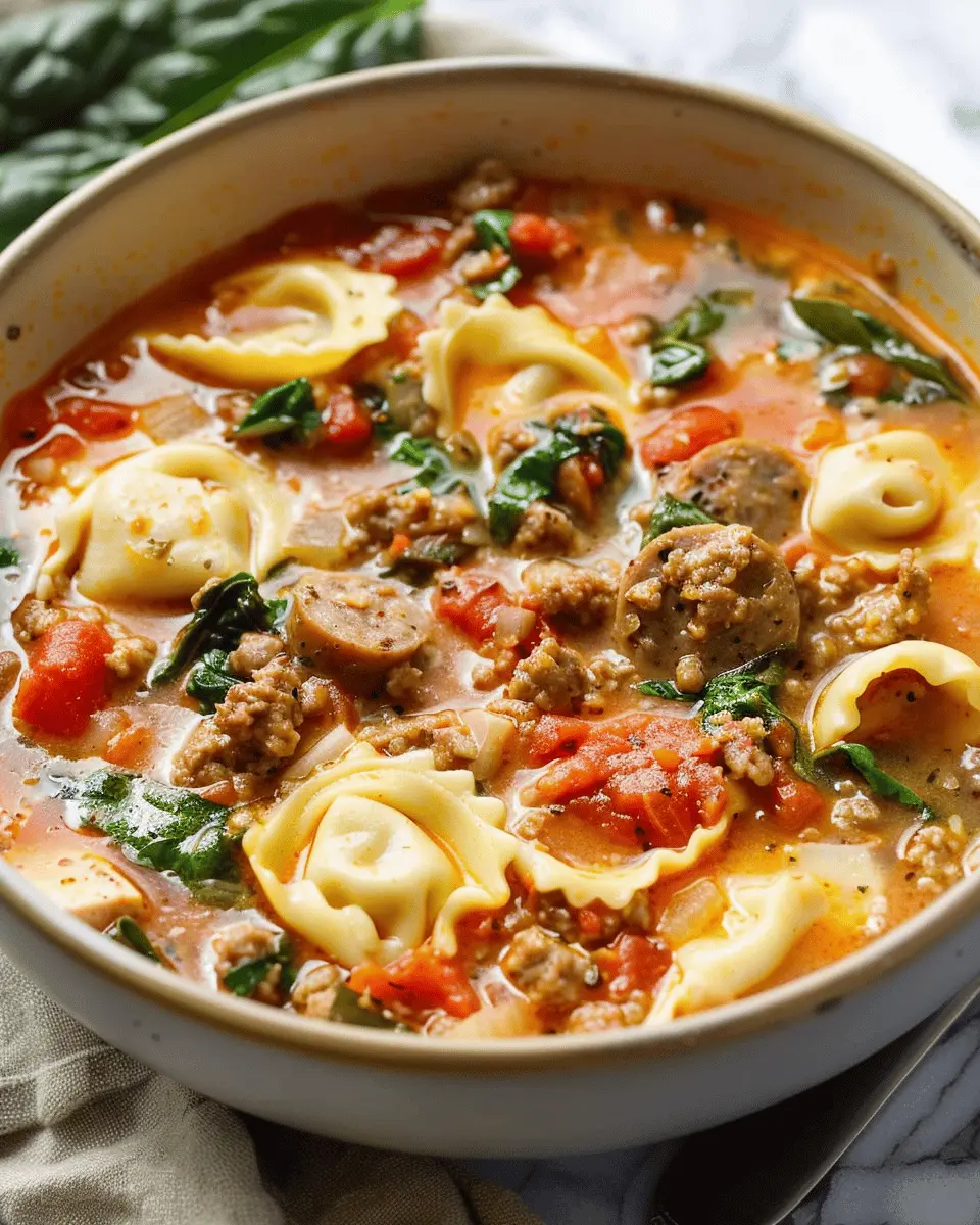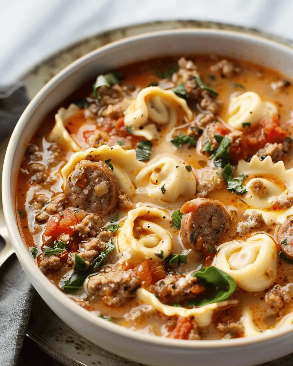 A deliciously hearty and comforting soup made with Italian sausage, tortellini, and rich flavors.