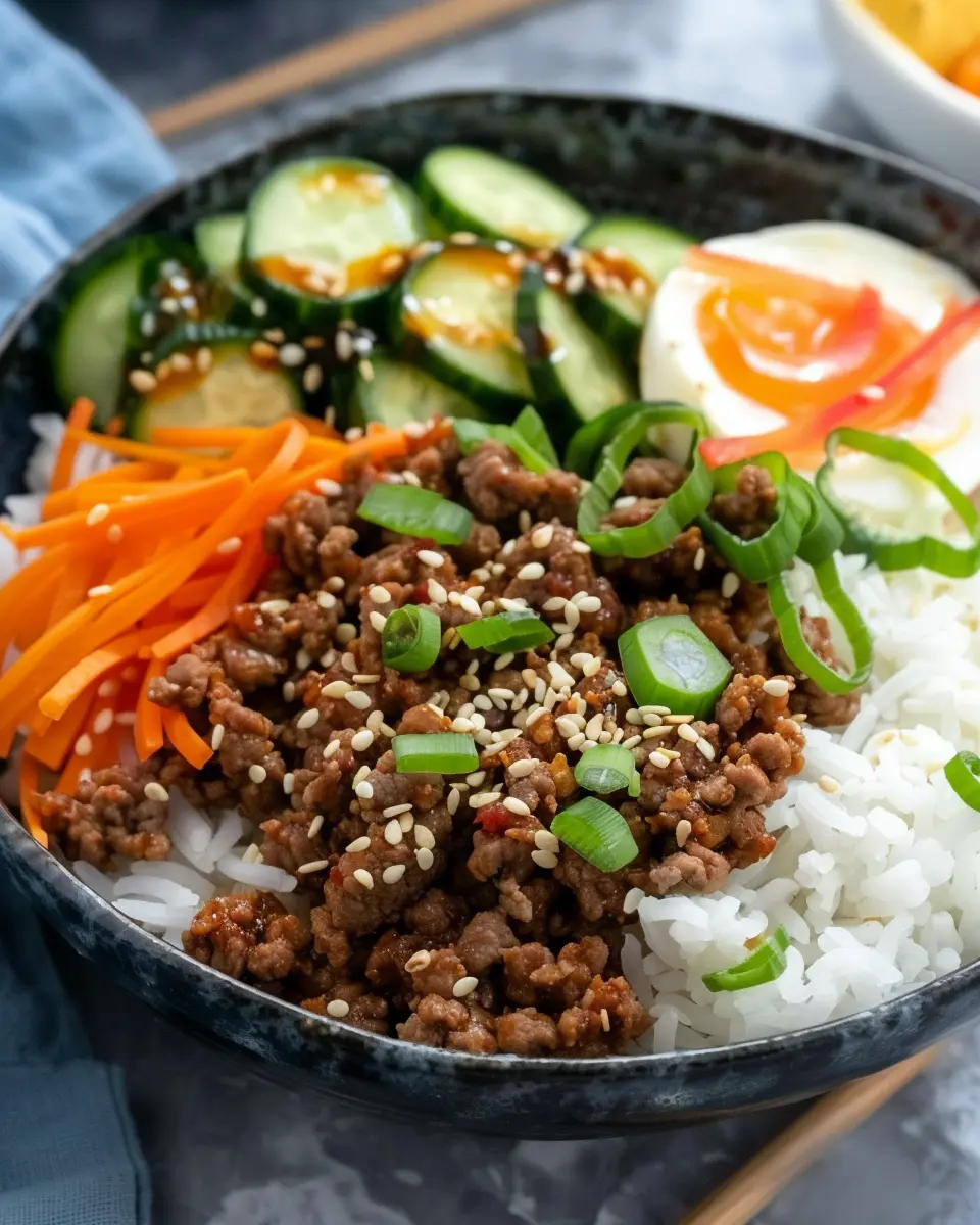 PrintKorean Ground Beef Bowls: Easy, Flavorful Family Dinner Idea