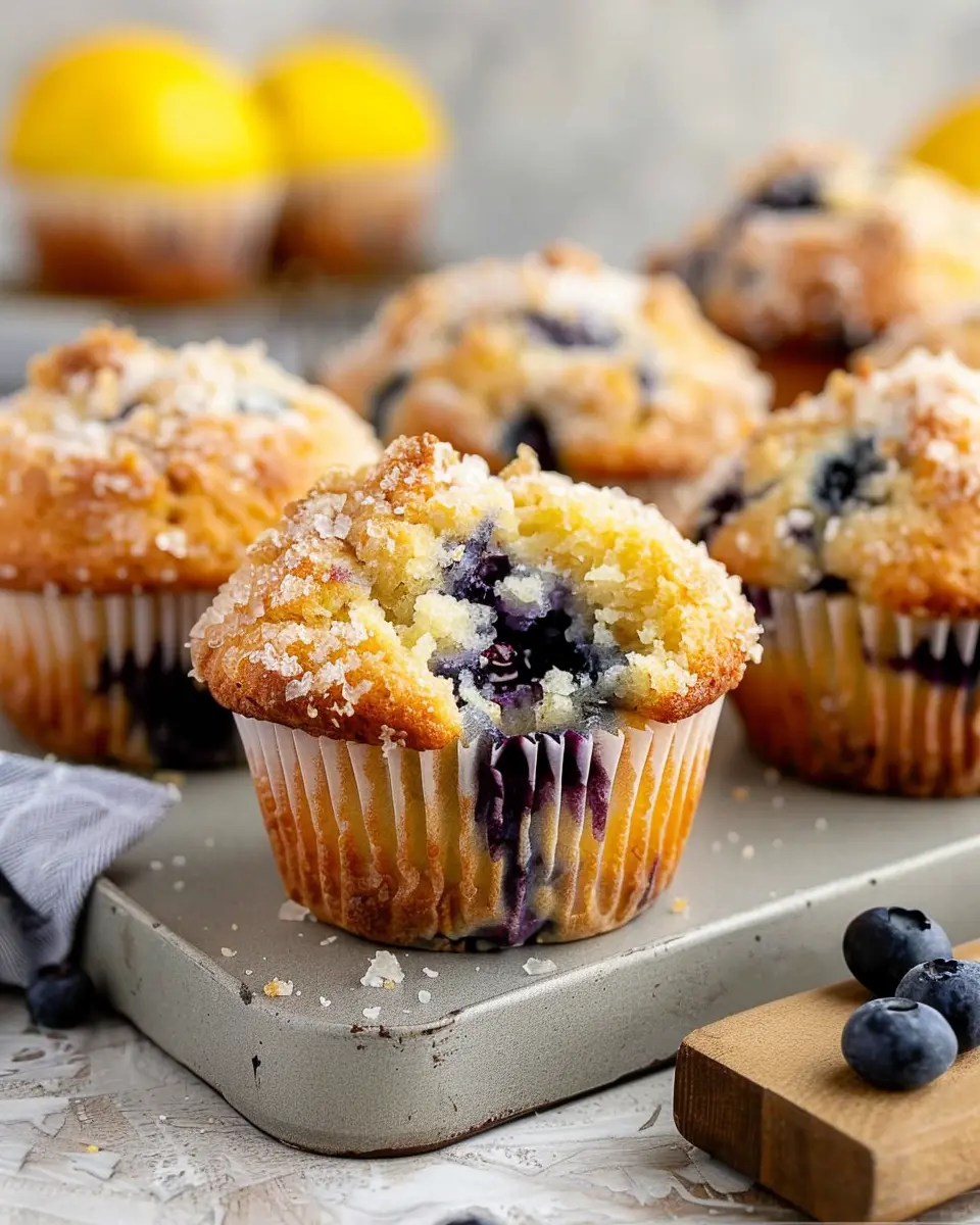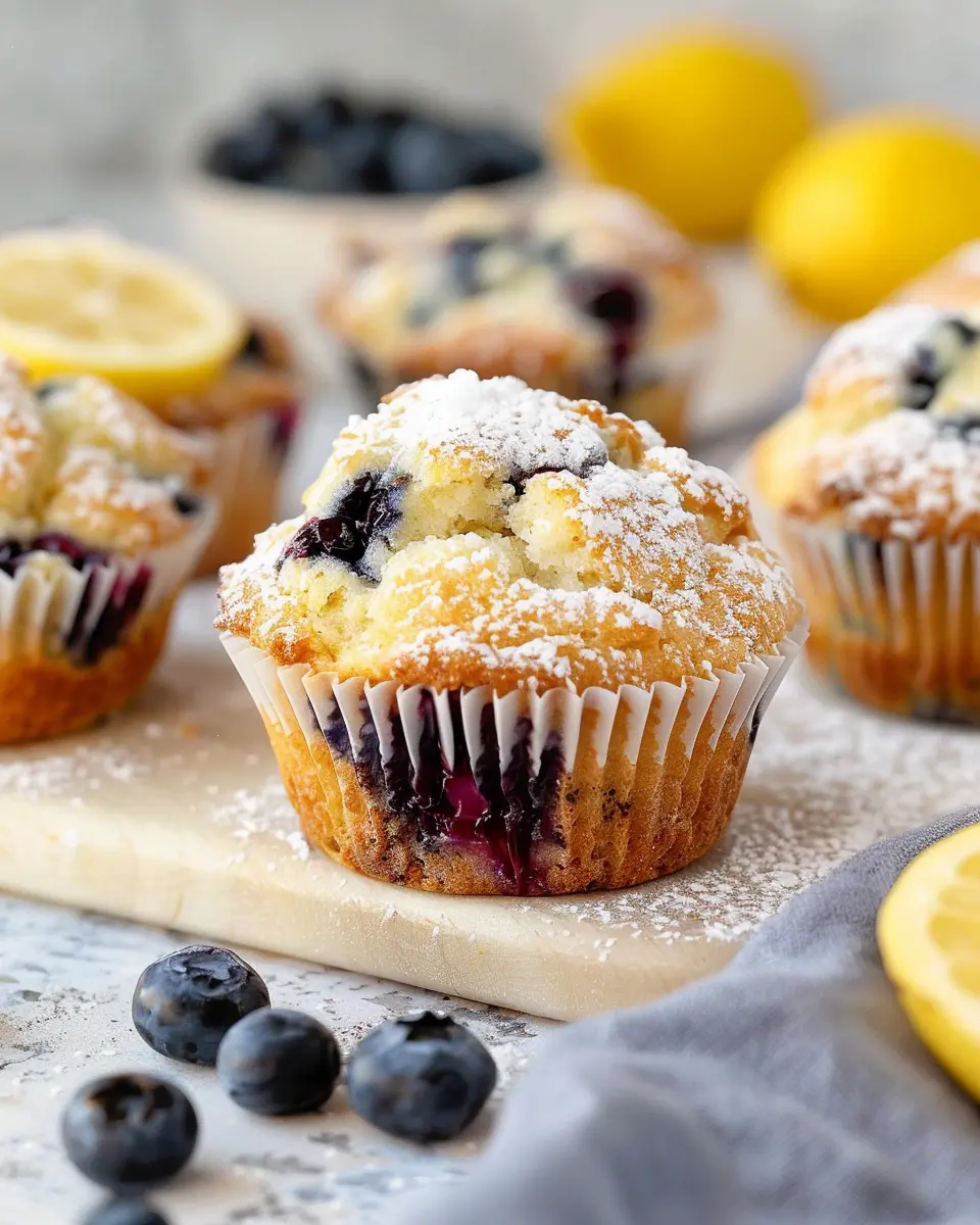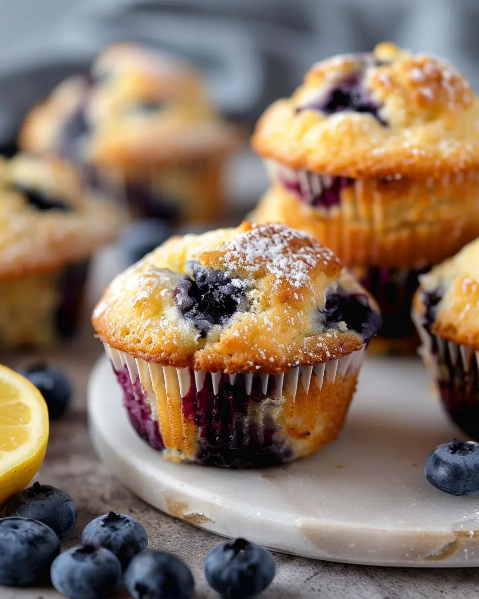 Enjoy the delightful combination of zesty lemons and sweet blueberries in these homemade muffins. Perfect for breakfast or a snack!