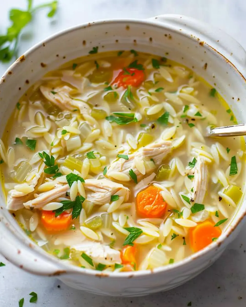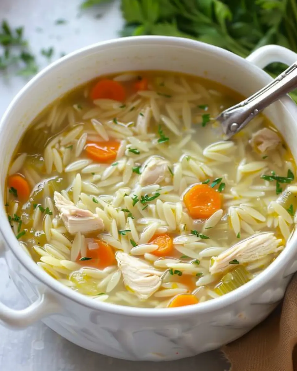 A comforting Lemon Chicken Orzo Soup that is easy to prepare and perfect for a home kitchen.