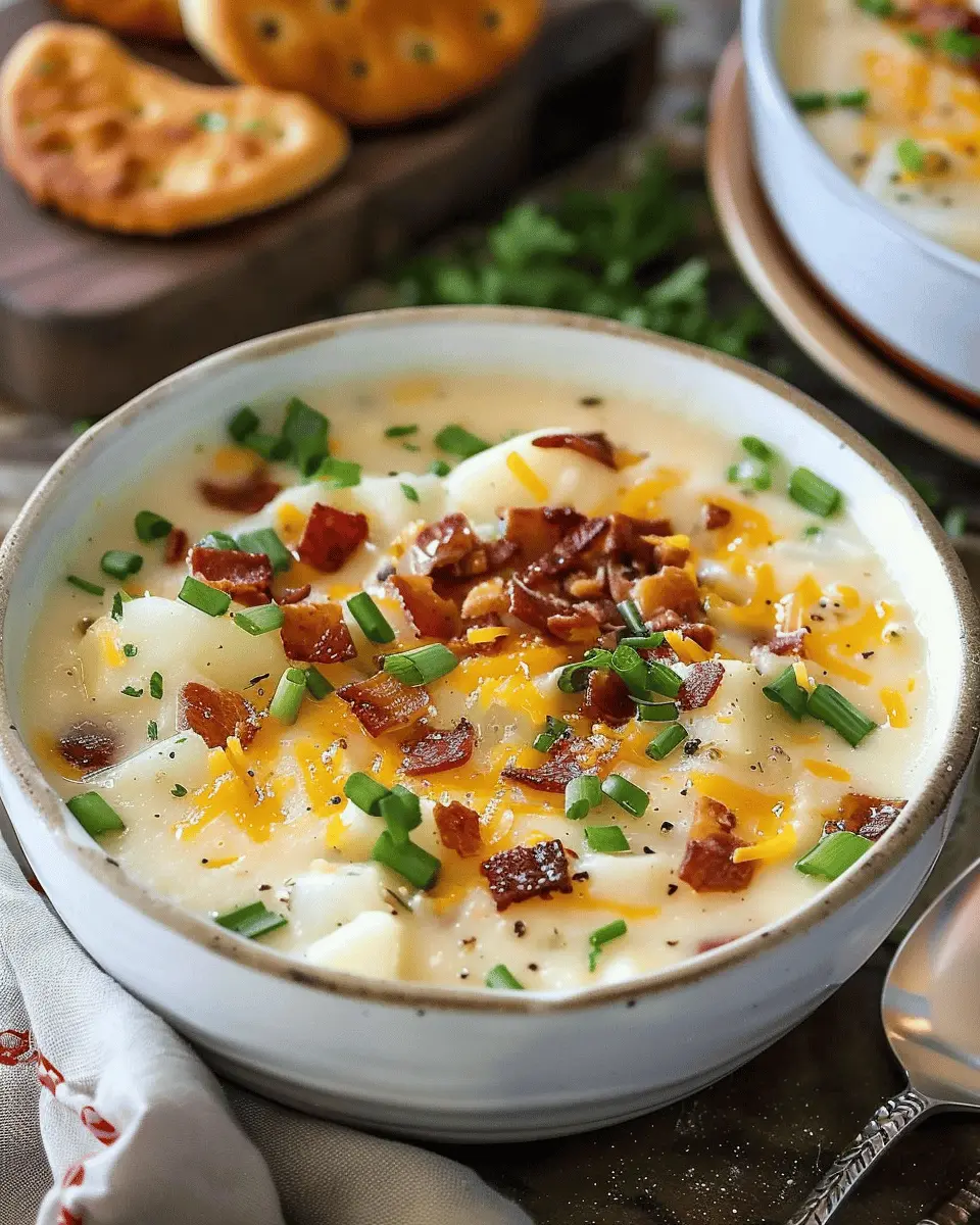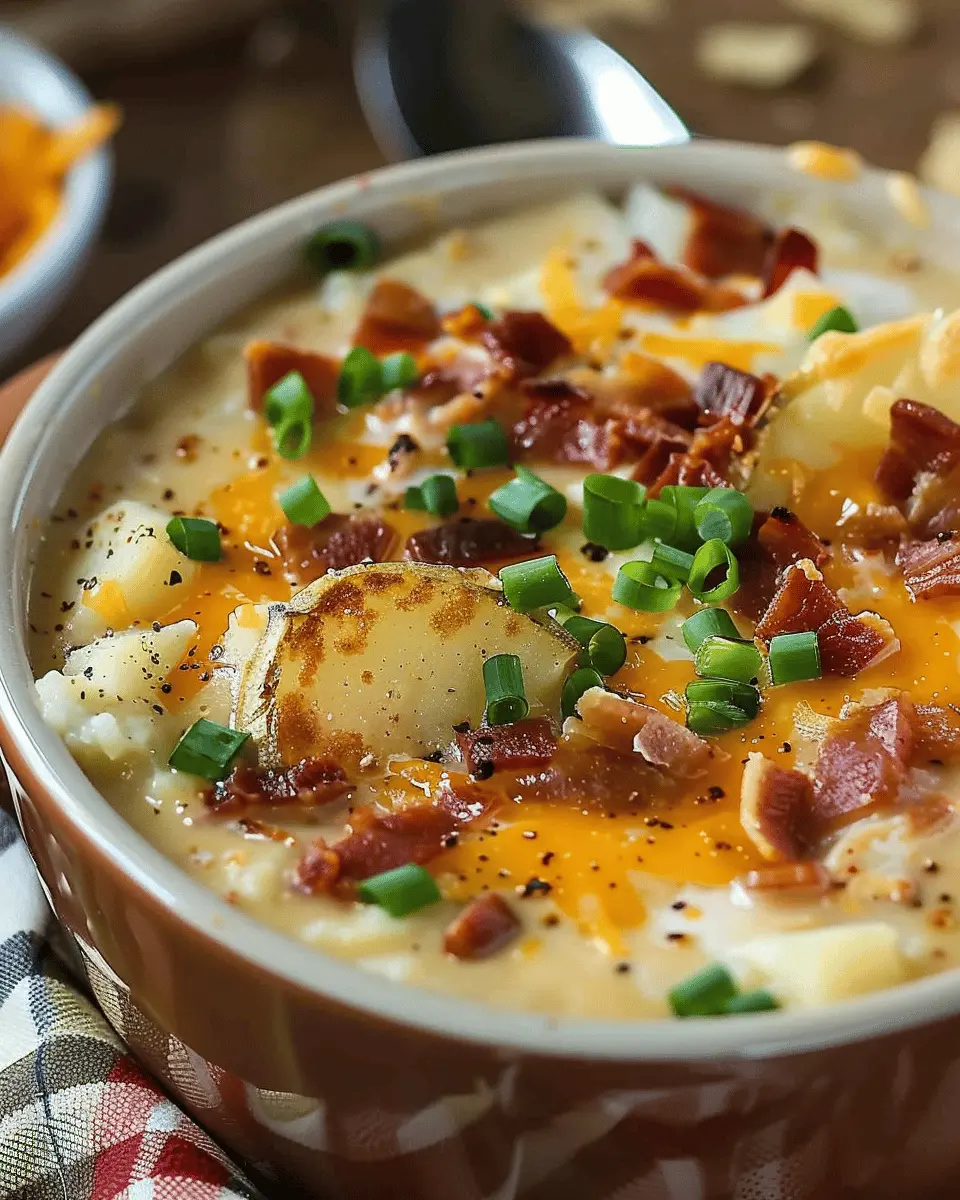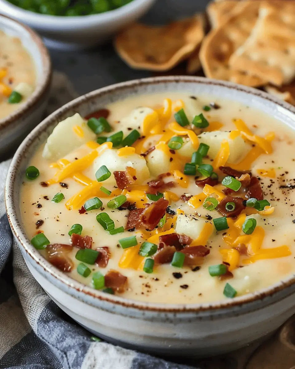 Serve your loaded potato soup with green onions, shredded cheese, or any other toppings you prefer. Enjoy this bowl of comfort, perfect for cozy nights in or shared moments with friends! And there you have it—the ultimate guide to preparing loaded potato soup step by step. Happy cooking!