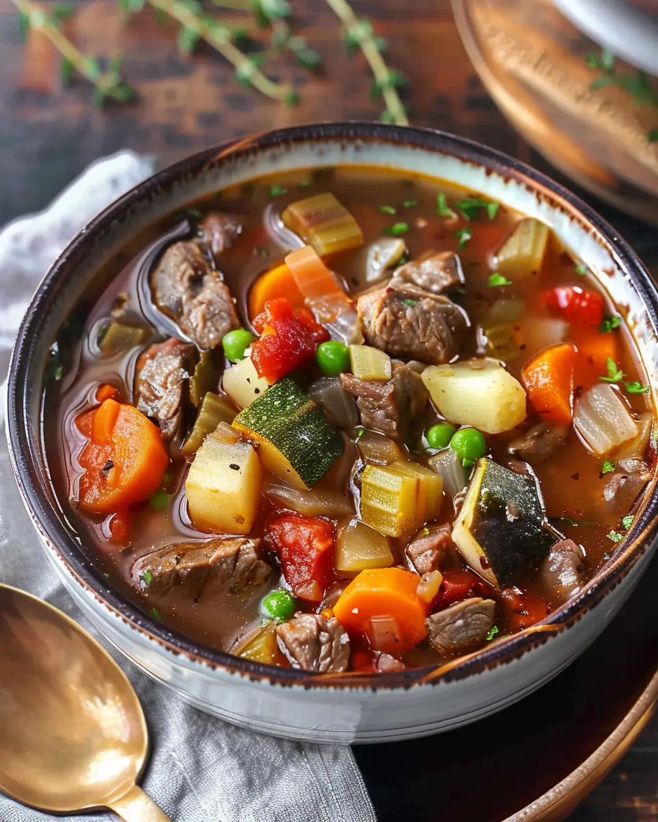 A classic recipe for vegetable beef soup that warms the heart and fills the belly.