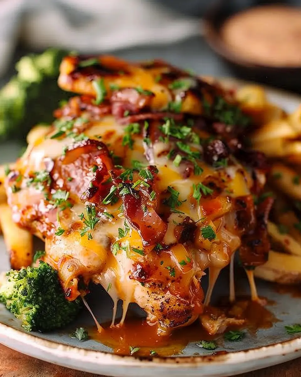 With your chicken browned, let’s bring this dish together! Place the browned chicken in your oven-safe skillet. Top each piece with the crispy turkey bacon, a slice or two of chicken ham, and a generous sprinkle of shredded cheese. Don’t be shy here; you want that cheesy goodness to melt into every crevice!