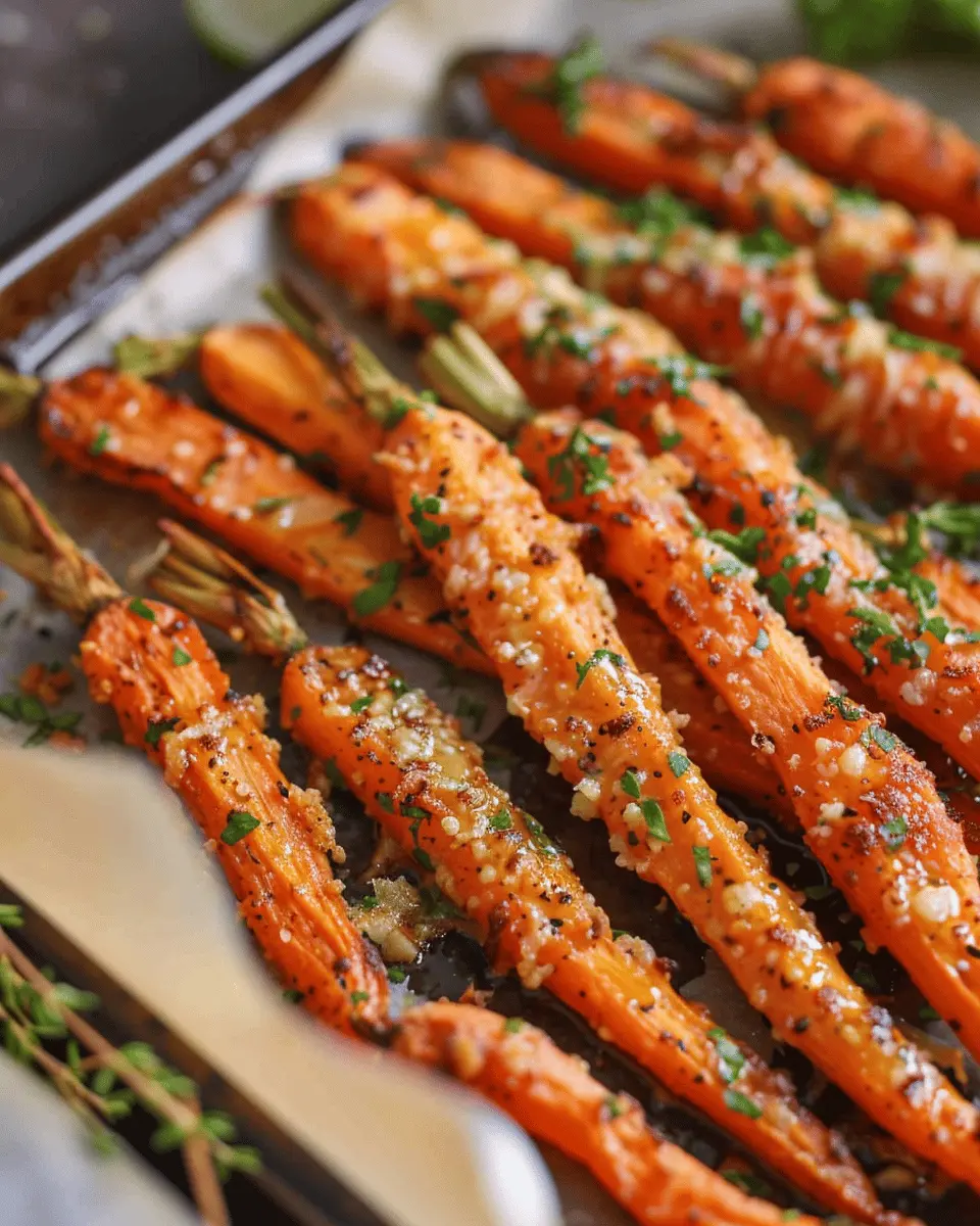 Don’t be afraid to get creative with the herbs and spices you use in your Parmesan Roasted Carrots! While classic options like thyme and rosemary are fantastic, mixing in some fresh oregano or a dash of cumin can offer a delightful twist. You might also want to sprinkle some smoked paprika for a hint of warmth and depth.