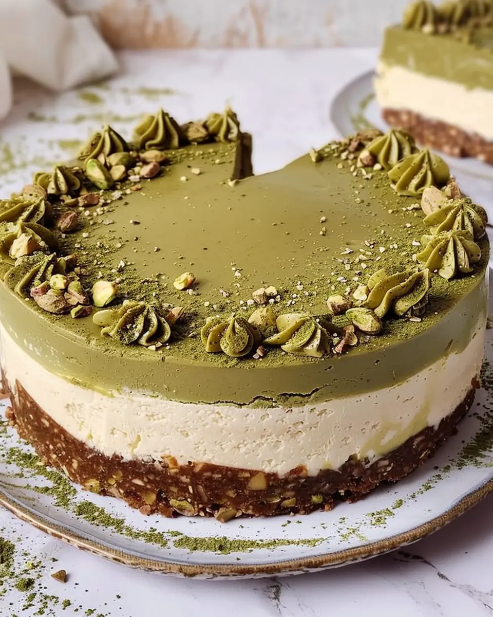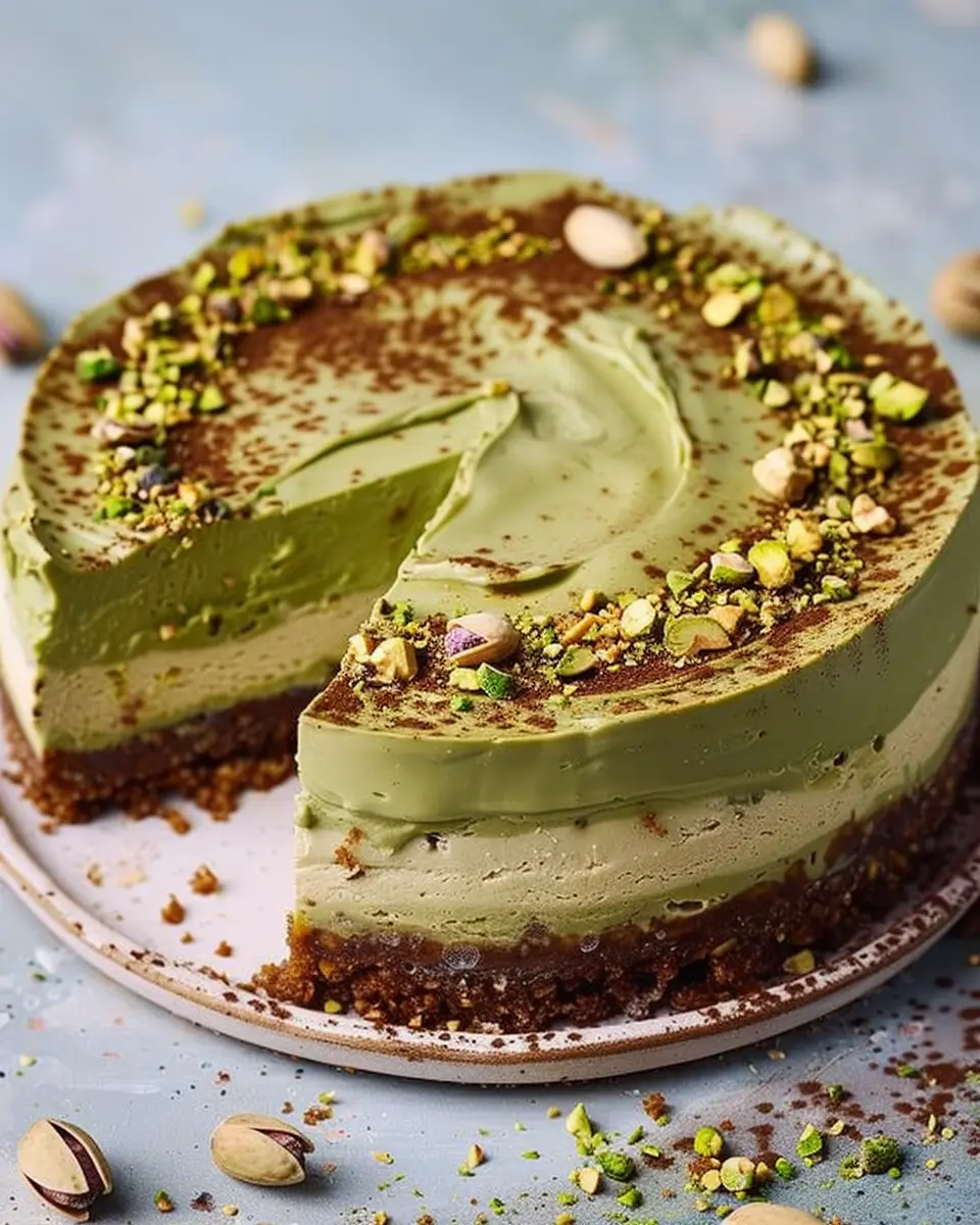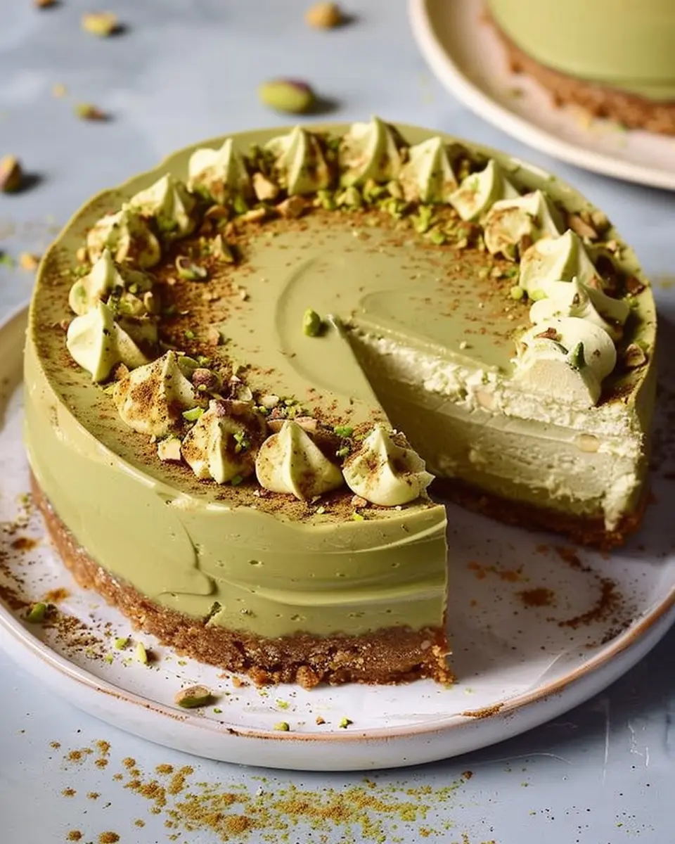 A delightful dessert made with creamy cheesecake and the rich flavor of pistachios, perfect for indulgent home cooking.