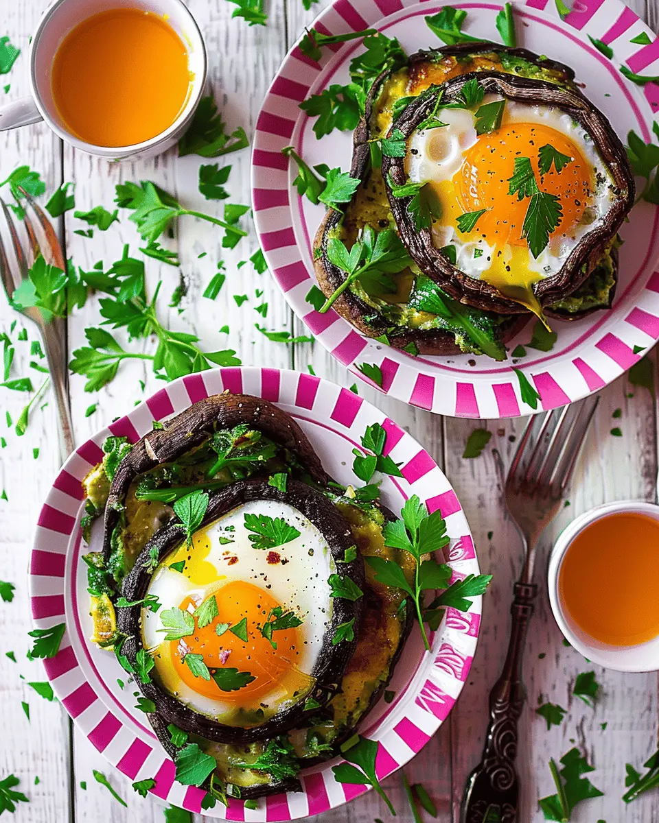 Once you’ve assembled everything, cooking takes around 25–30 minutes. You’ll want to ensure those eggs are perfectly set while the Portobello mushrooms soak up all the flavor.