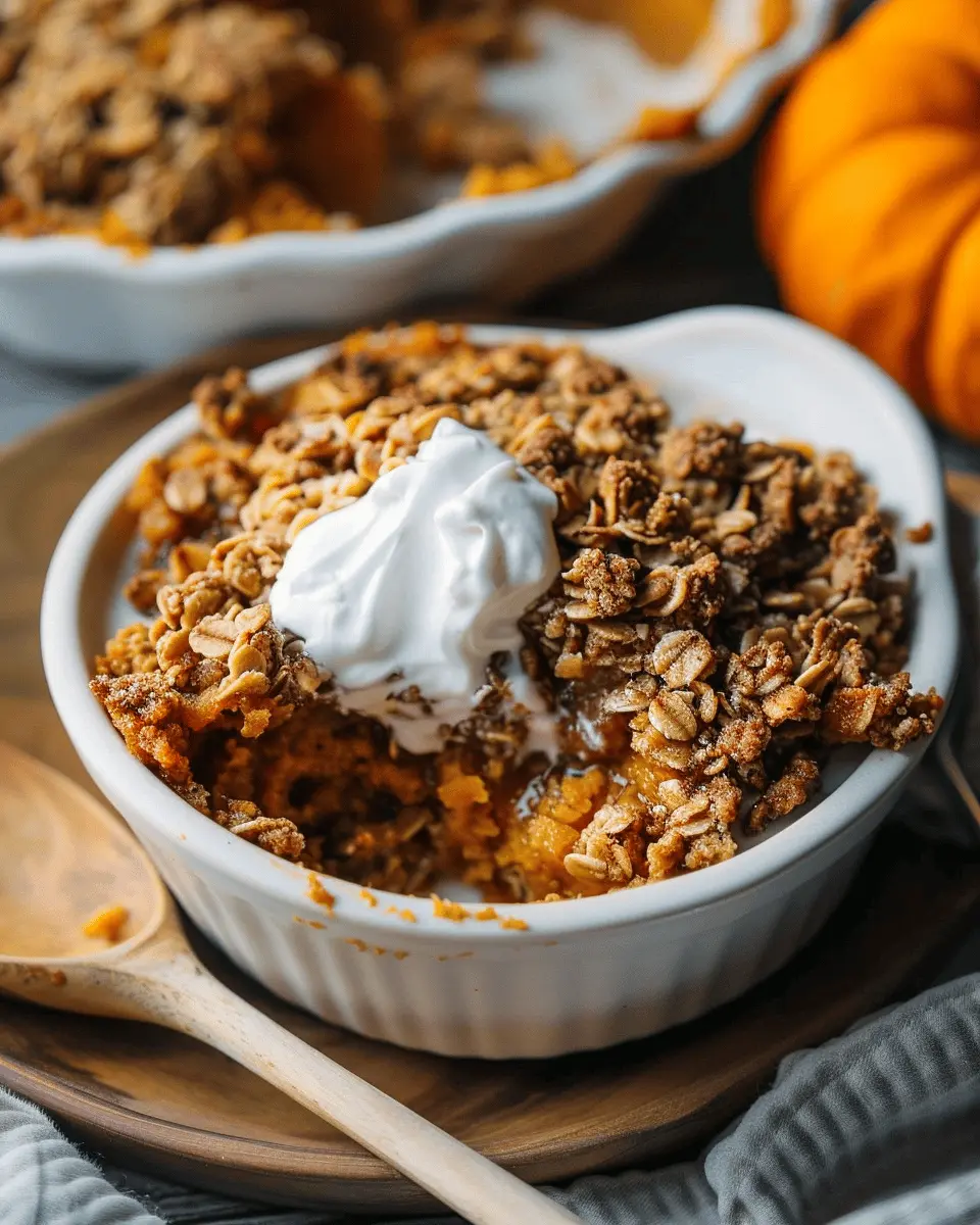 • Whipped Cream: A dollop of freshly whipped cream adds a light, fluffy texture that perfectly compliments the warm spices in your pumpkin crisp. You can even sprinkle a bit of cinnamon on top for that extra flair.