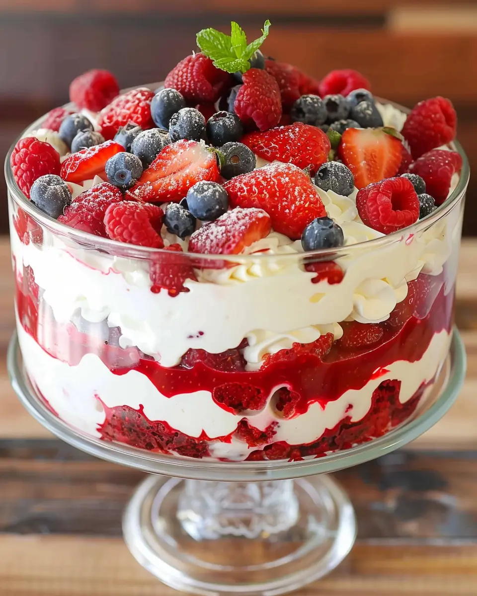 Indulge in a delightful Red Velvet Berry Trifle that beautifully combines the rich flavors of red velvet cake with fresh berries and creamy layers. Perfect for any occasion!