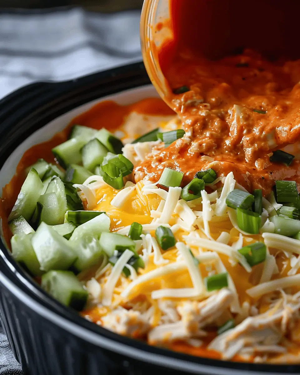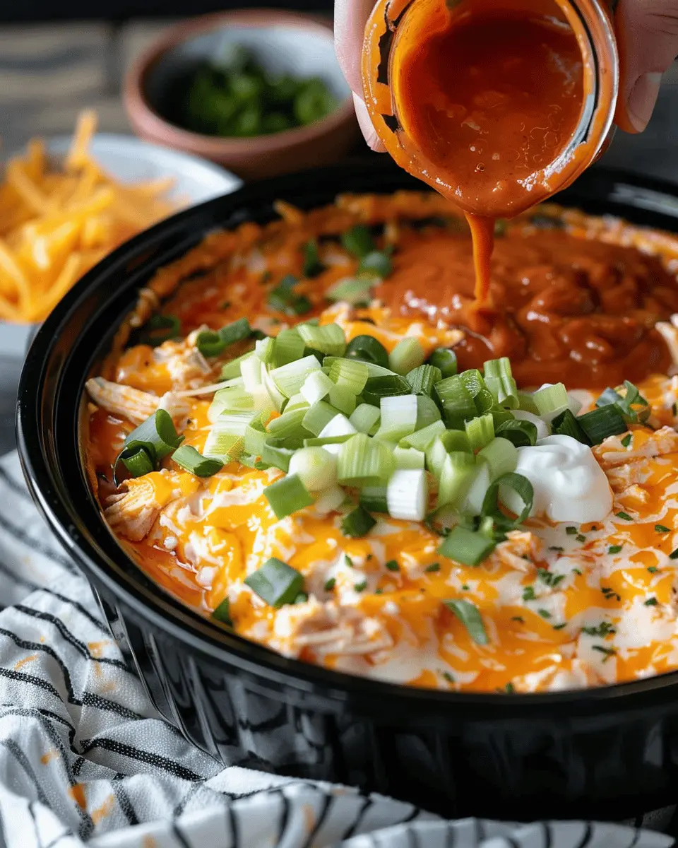 PrintSlow Cooker Buffalo Chicken Dip Recipe: Indulgent and Easy Delight