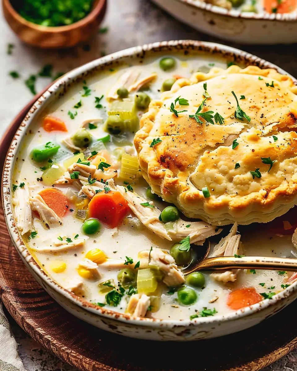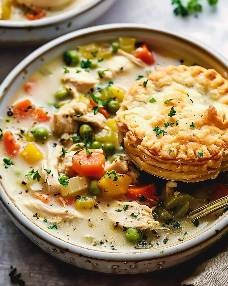 Now that you have your delightful slow cooker chicken pot pie soup ready to go, serve it hot with your freshly baked biscuits on the side. It’s comfort food at its finest, perfect for cozy nights in. Enjoy your culinary creations, and don’t forget to share your experience with friends or on social media! For more recipes like this, check out additional cooking tips and inspirations at Food Network.