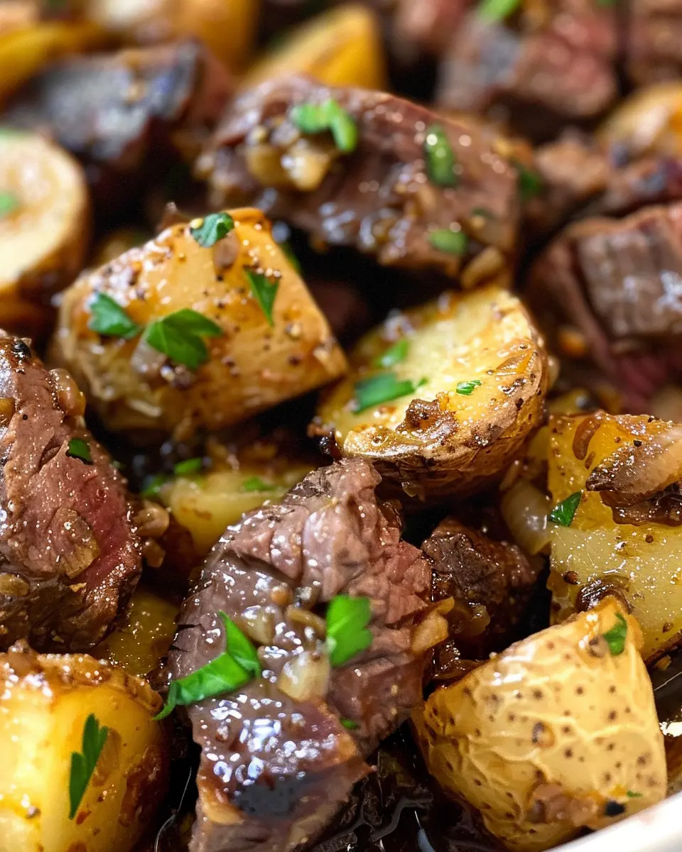 - Pour the mixture over the steak and potatoes.